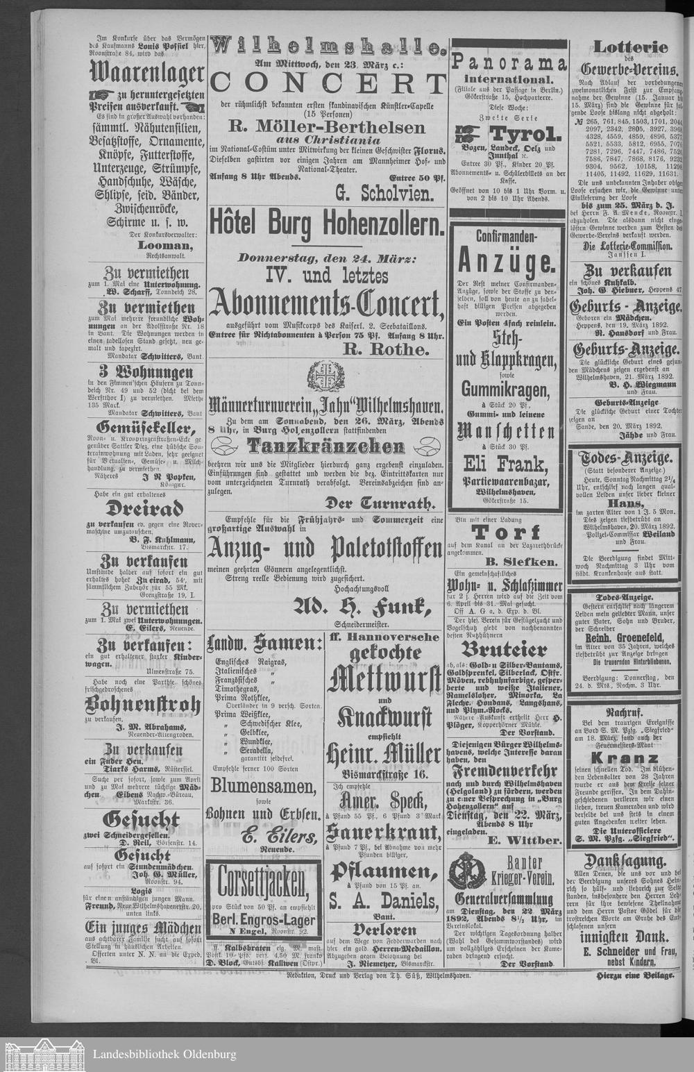 Wilhelmshavener Tageblatt und amtlicher Anzeiger....