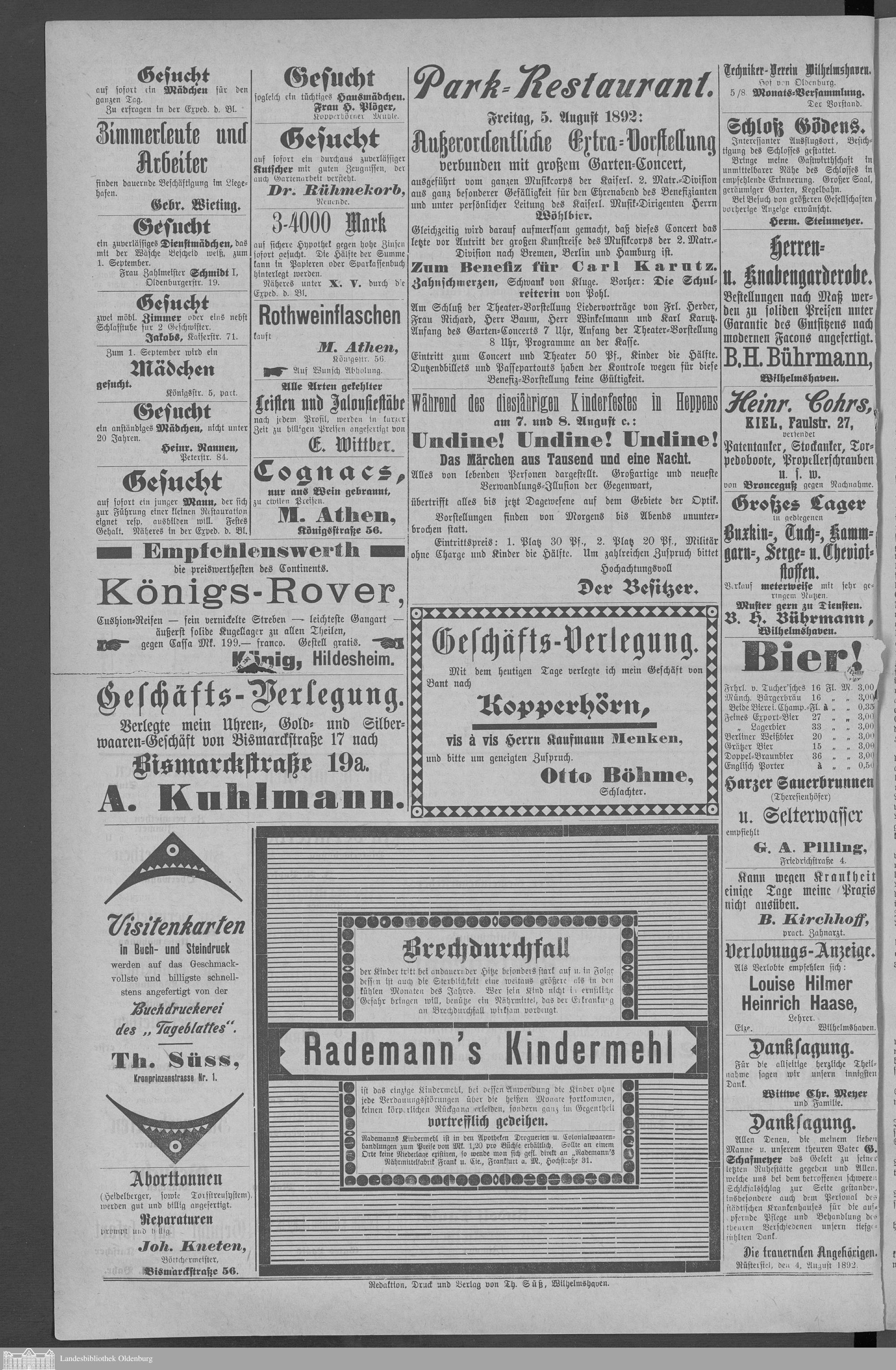 Wilhelmshavener Tageblatt und amtlicher Anzeiger. 1881-1909