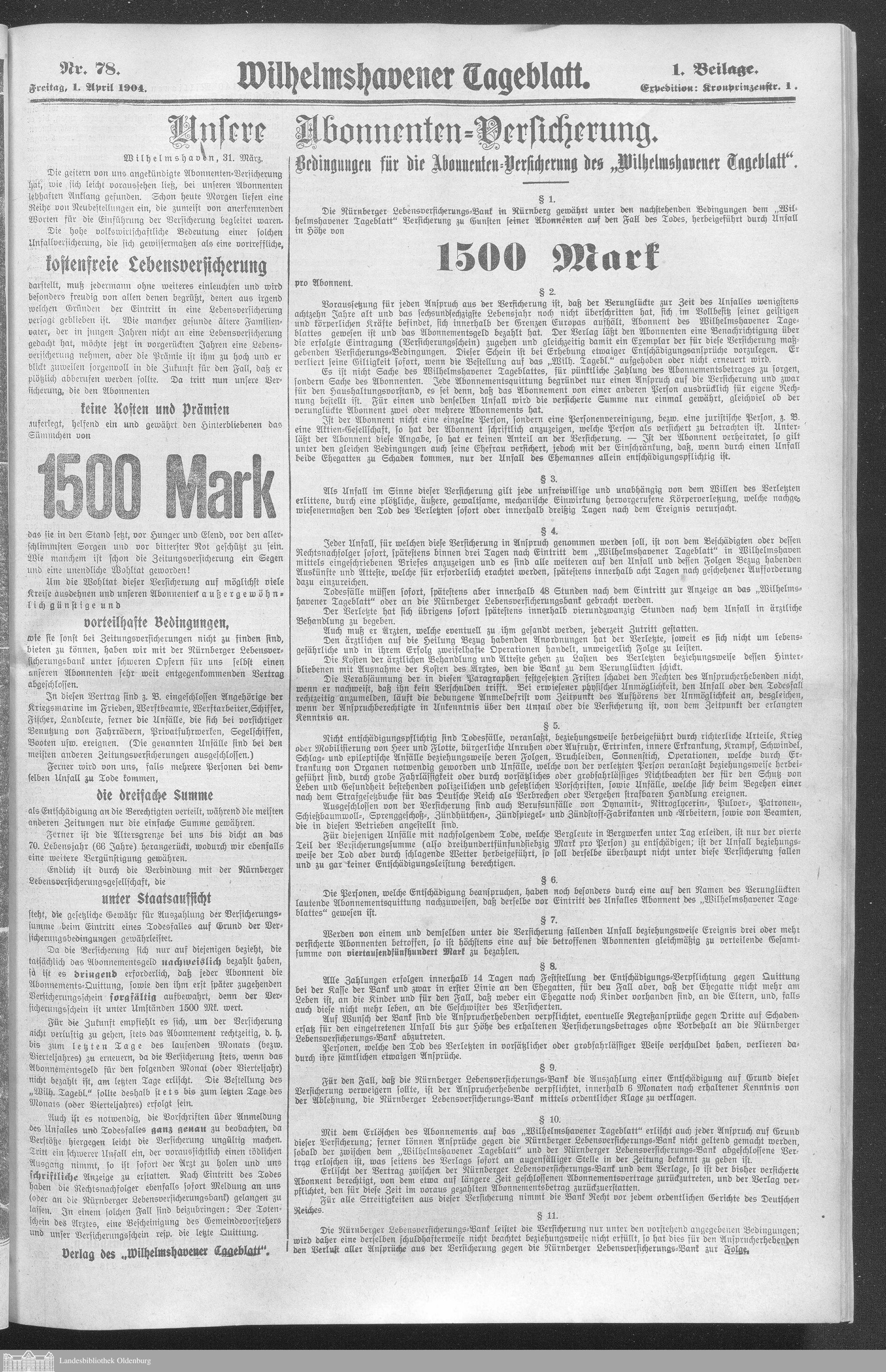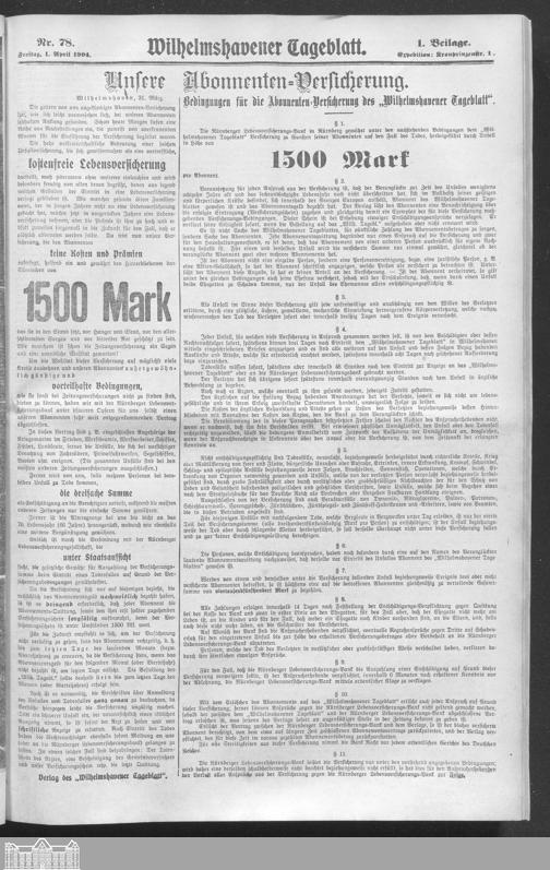 Wilhelmshavener Tageblatt und amtlicher Anzeiger. 1881-1909