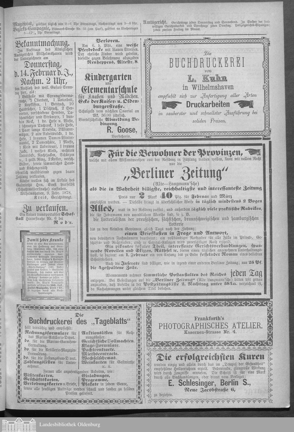 Wilhelmshavener Tageblatt und Anzeiger. 1876-1880