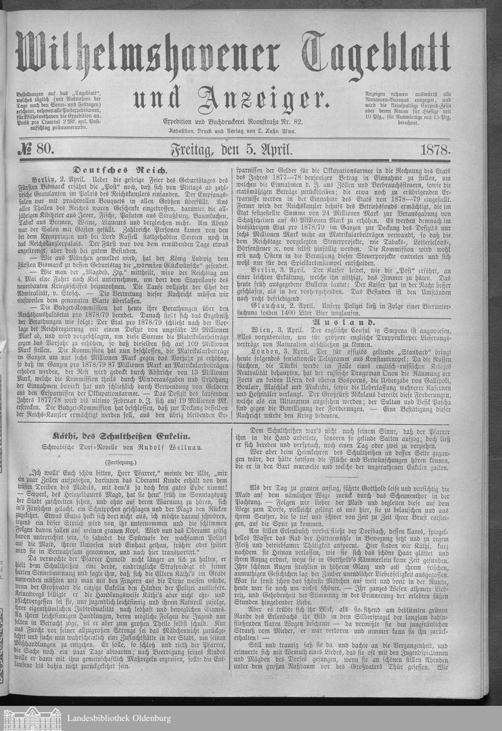 Wilhelmshavener Tageblatt und Anzeiger. 1876-1880