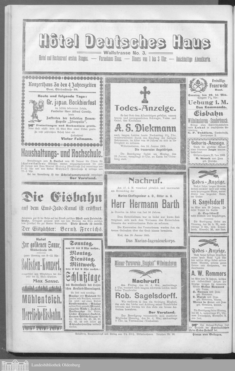 Wilhelmshavener Tageblatt und amtlicher Anzeiger....