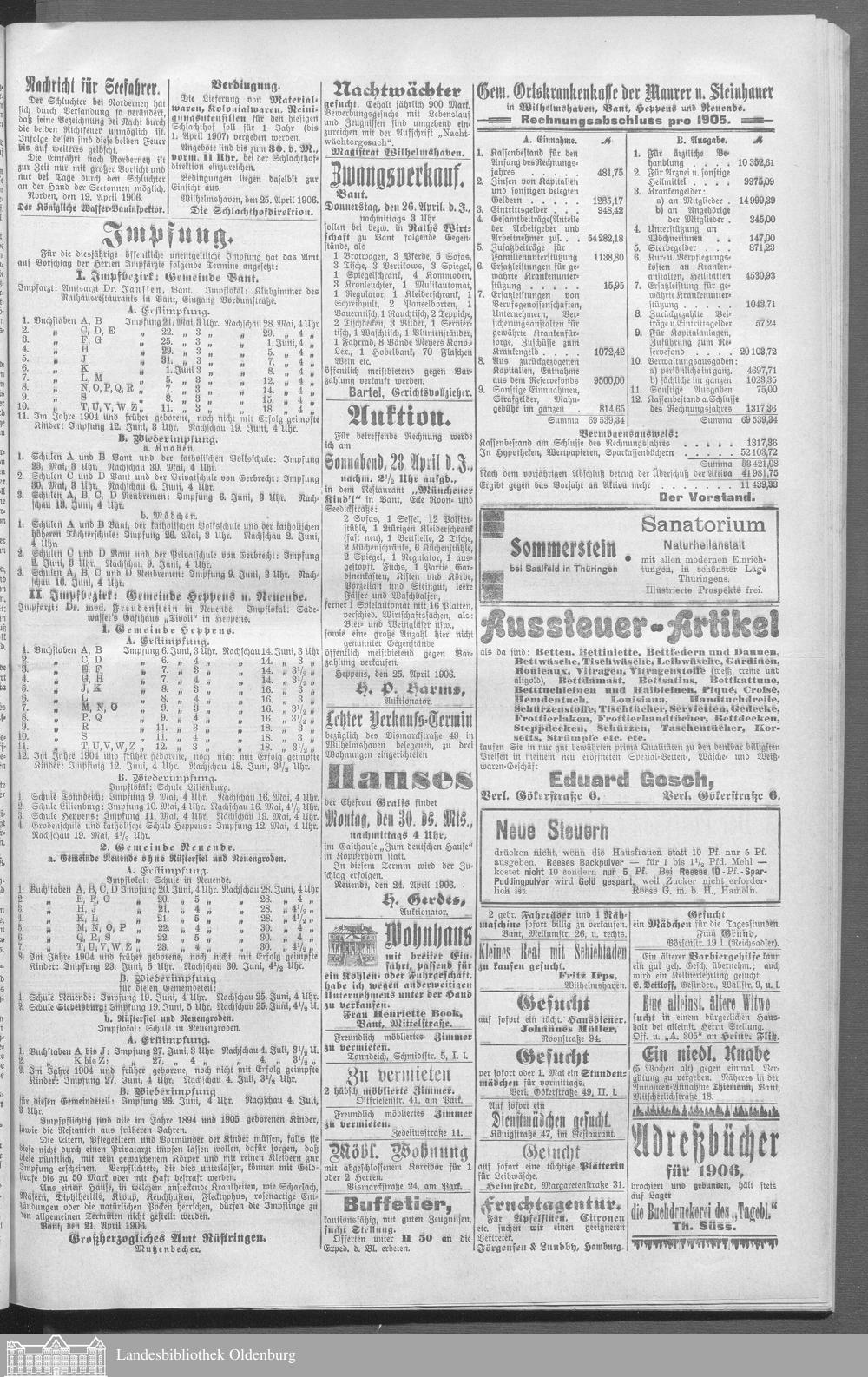 Wilhelmshavener Tageblatt und amtlicher Anzeiger....