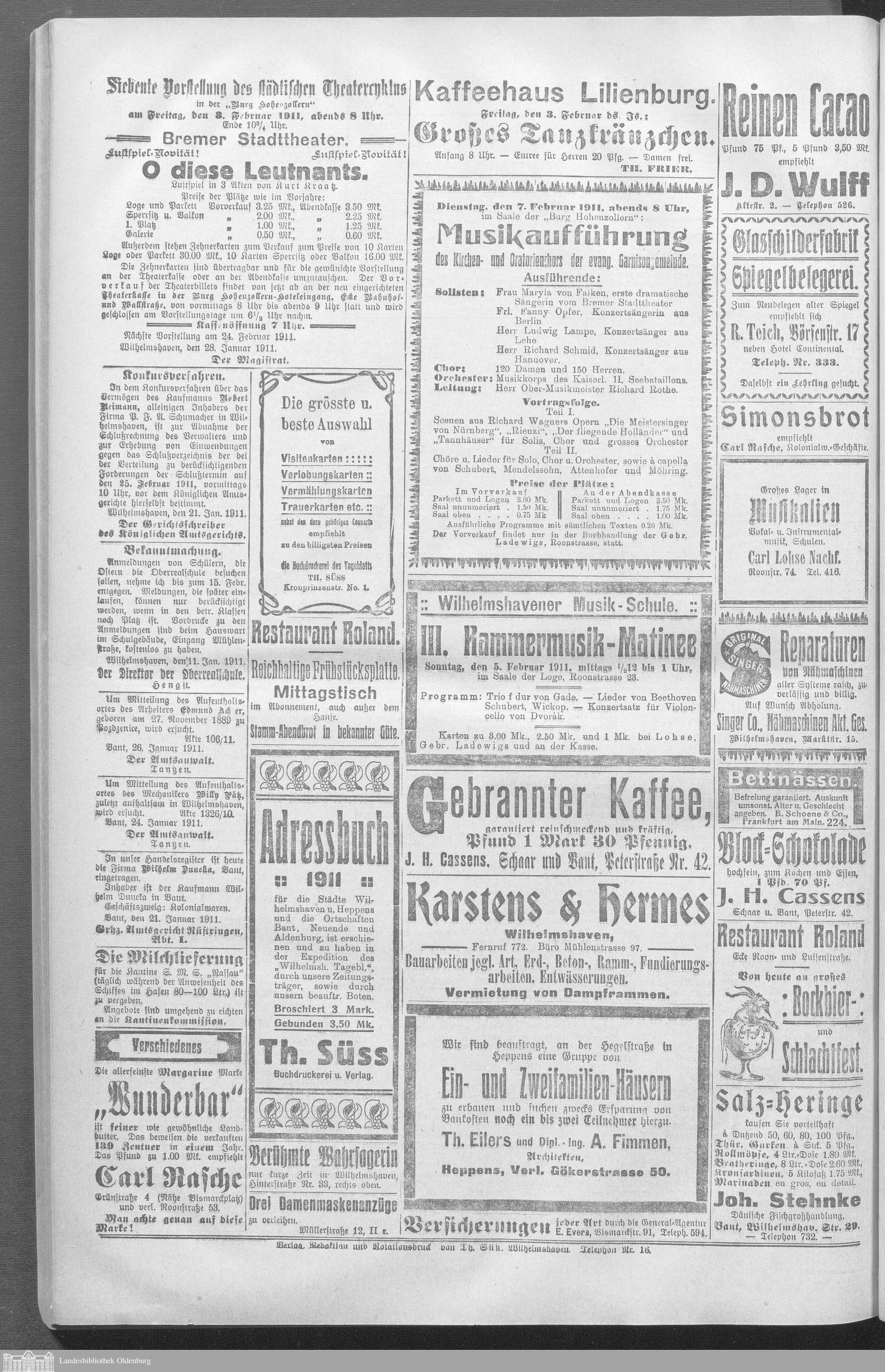 Wilhelmshavener Tageblatt. 1909-1929