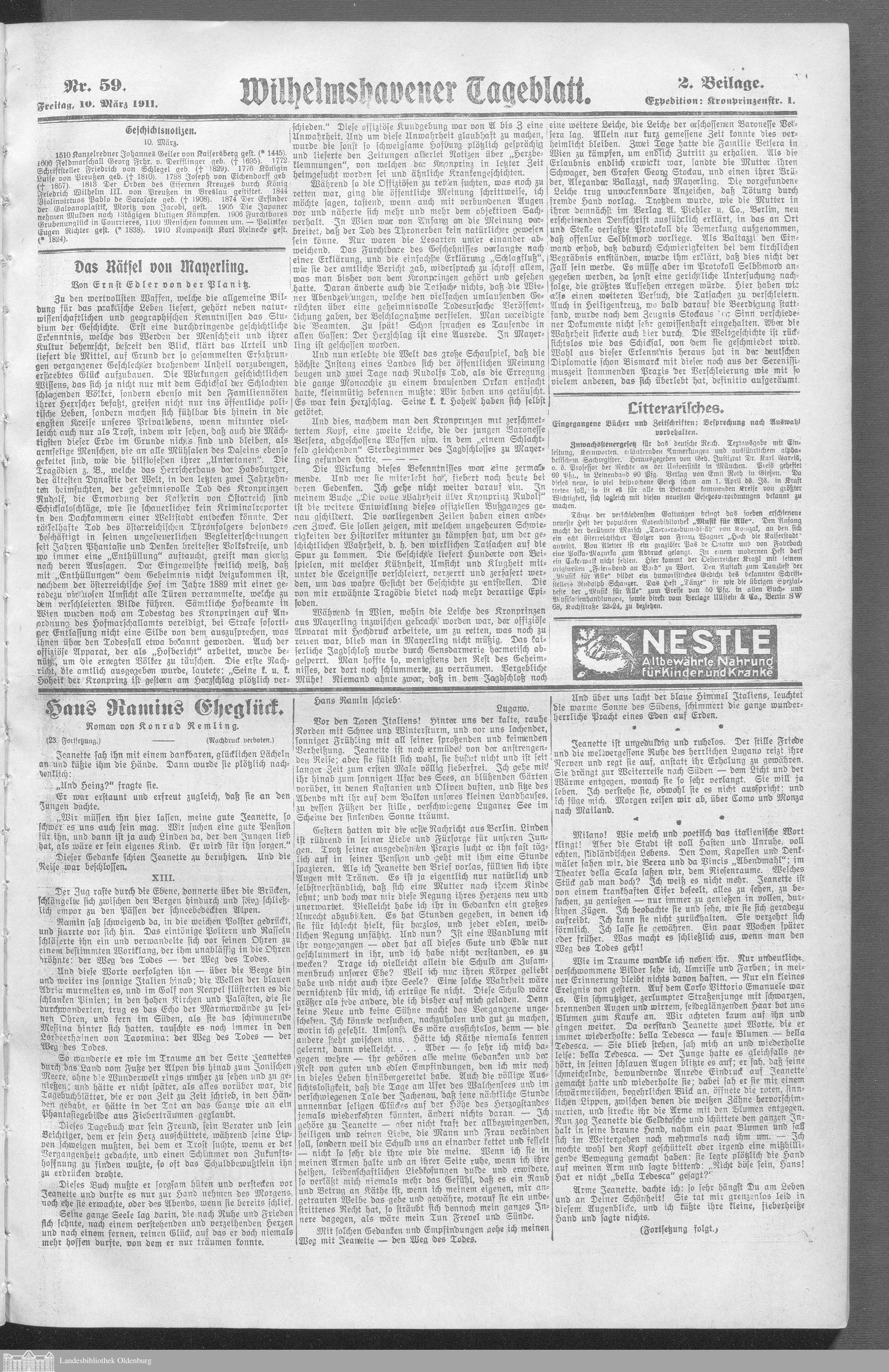 Wilhelmshavener Tageblatt. 1909-1929