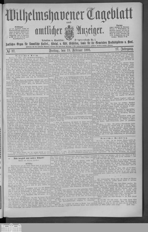 Wilhelmshavener Tageblatt und amtlicher Anzeiger. 1881-1909