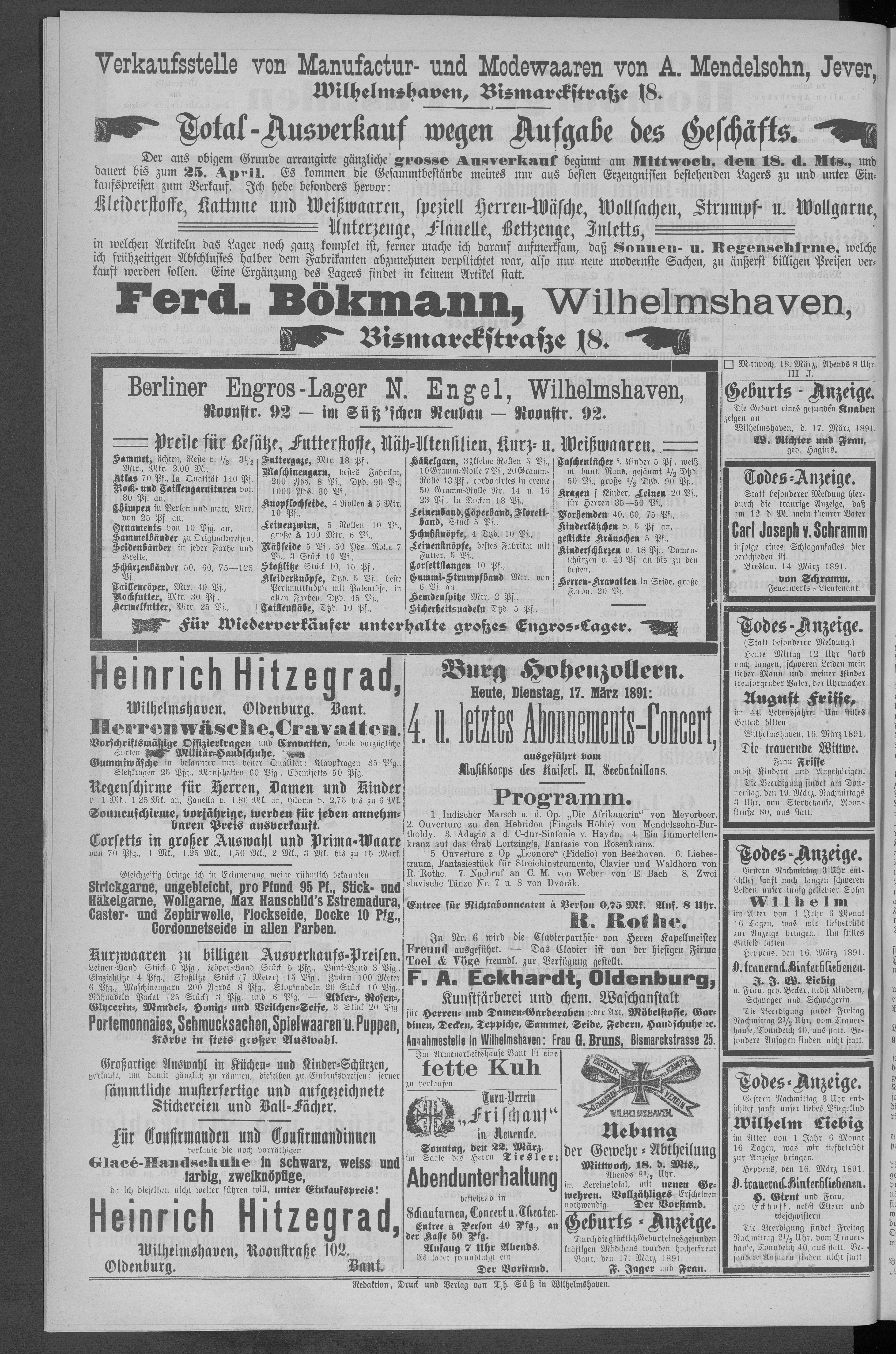 Wilhelmshavener Tageblatt und amtlicher Anzeiger....