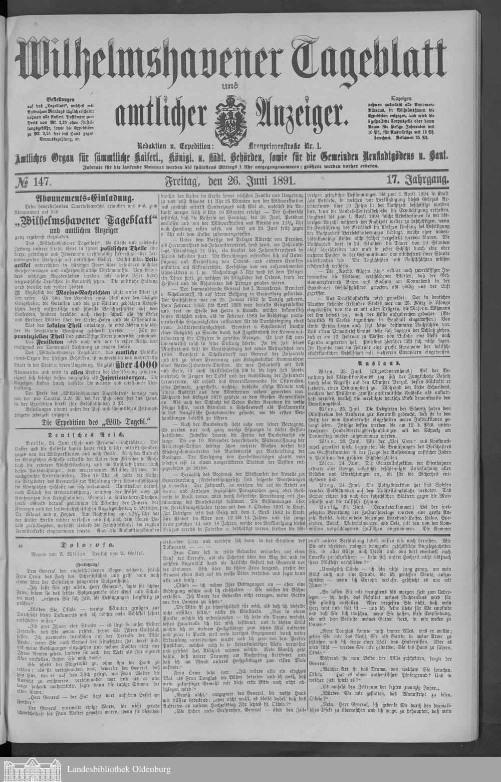 Wilhelmshavener Tageblatt und amtlicher Anzeiger. 1881-1909