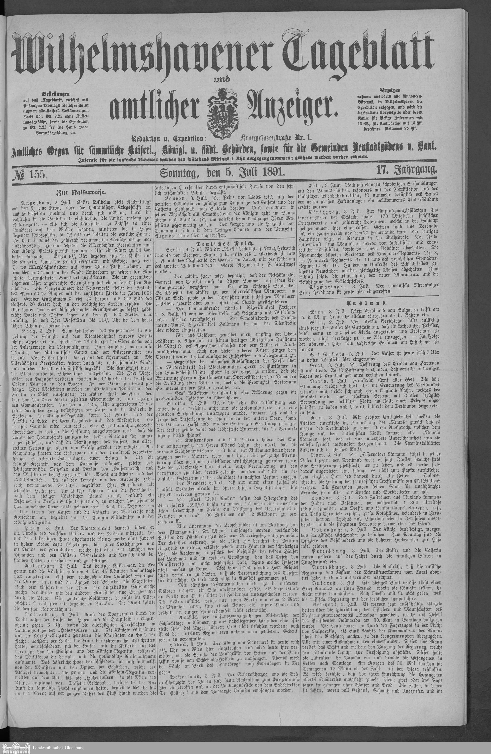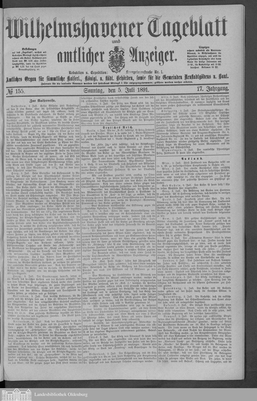 Wilhelmshavener Tageblatt und amtlicher Anzeiger....