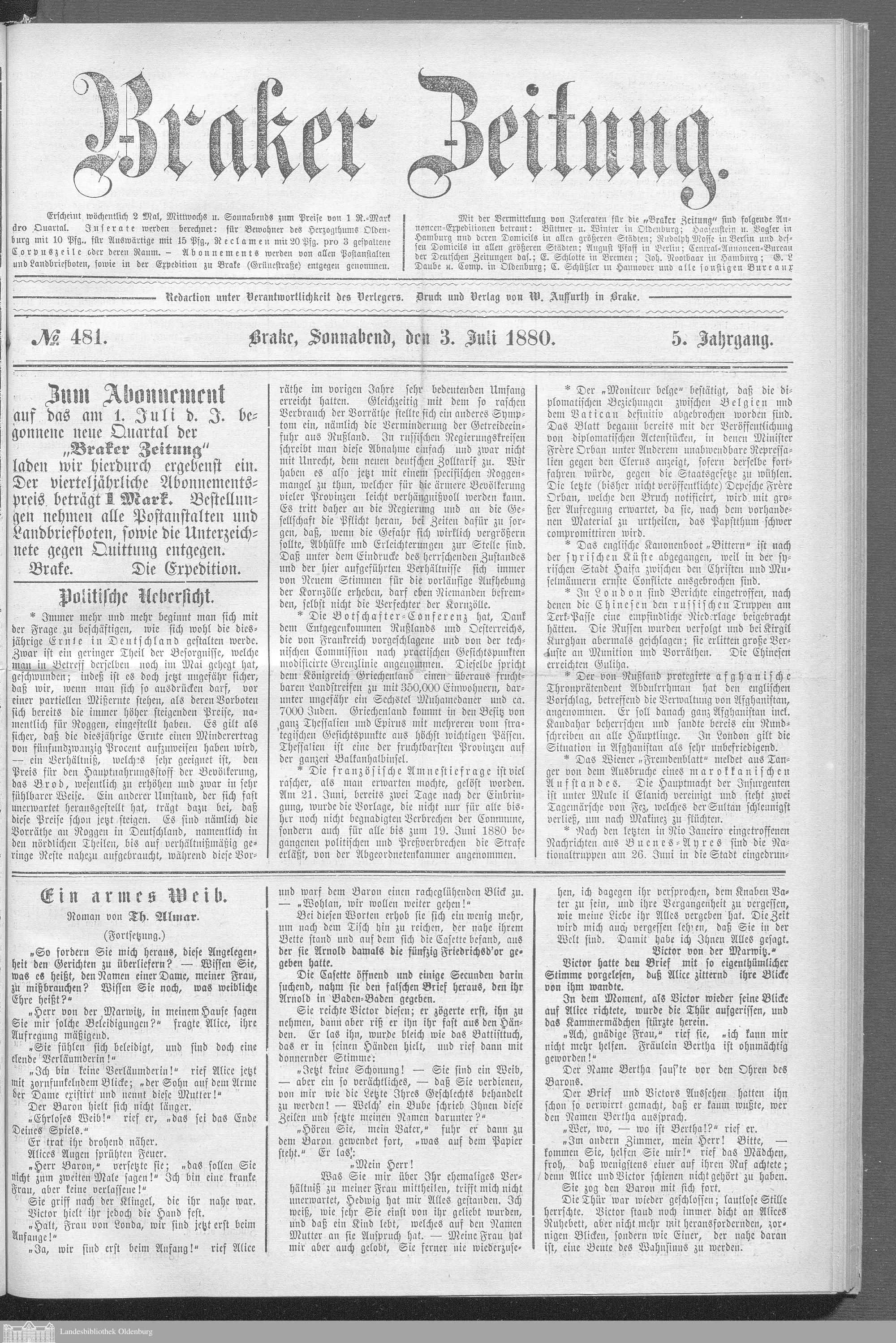 Braker Zeitung. 1876-1881