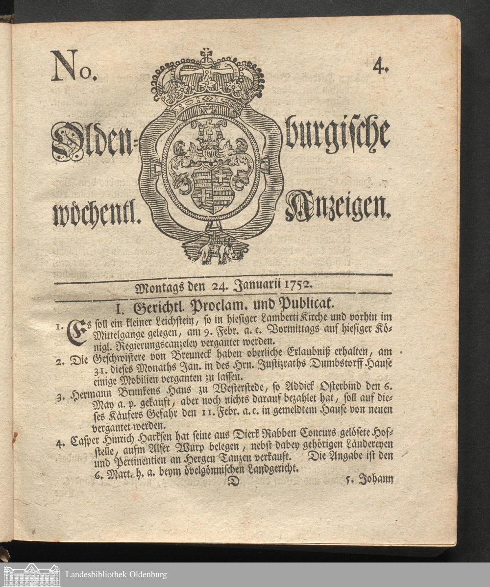 Oldenburgische wöchentliche Anzeigen. 1749-1826