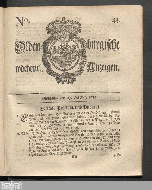 Oldenburgische wöchentliche Anzeigen. 1749-1826