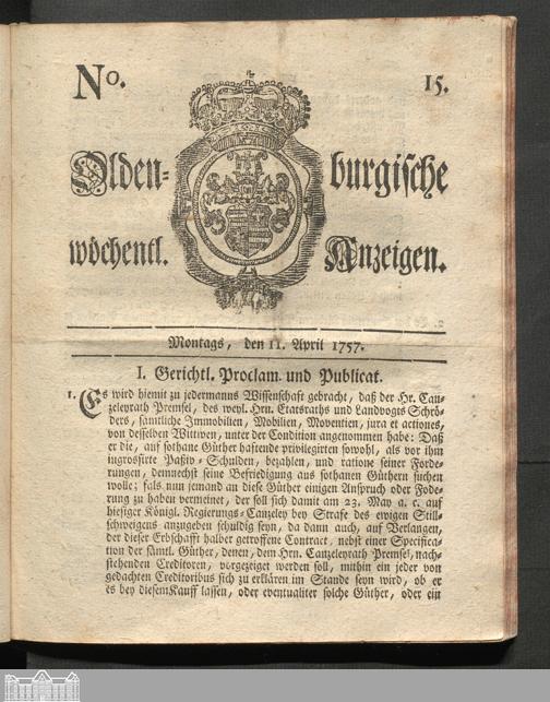 Oldenburgische wöchentliche Anzeigen. 1749-1826