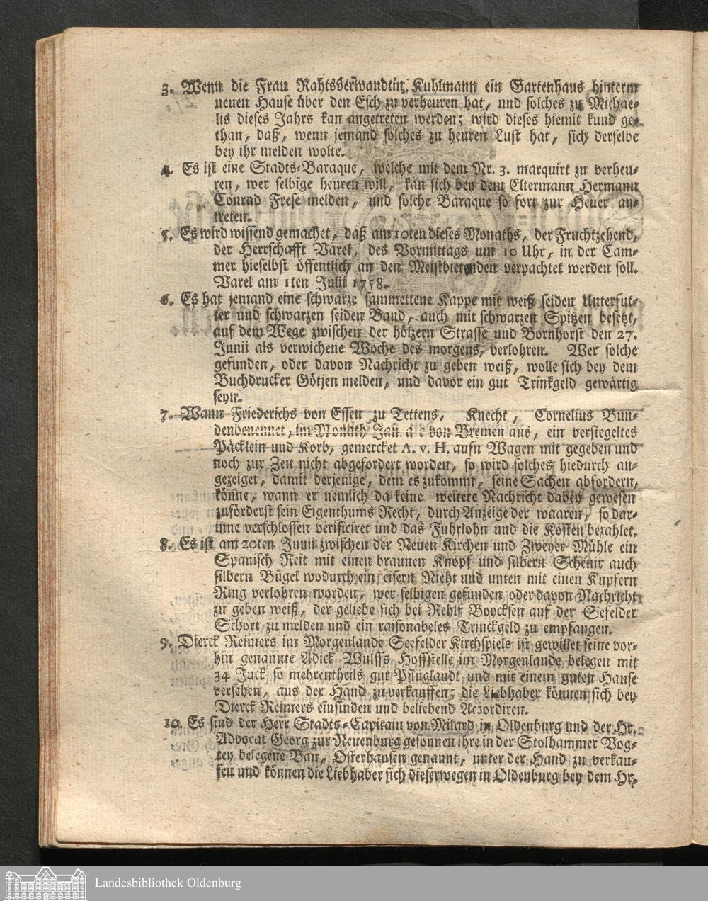 Oldenburgische wöchentliche Anzeigen. 1749-1826