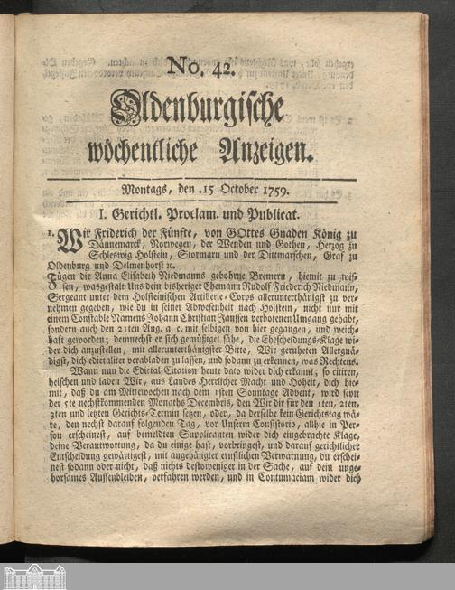 Oldenburgische wöchentliche Anzeigen. 1749-1826