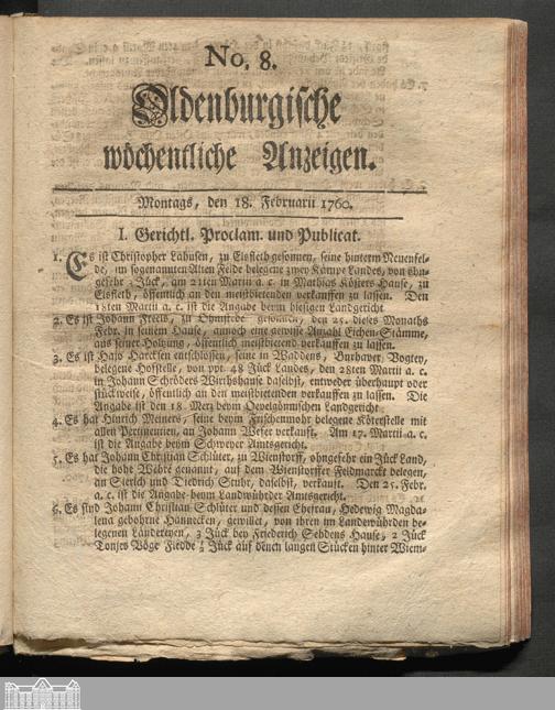 Oldenburgische wöchentliche Anzeigen. 1749-1826