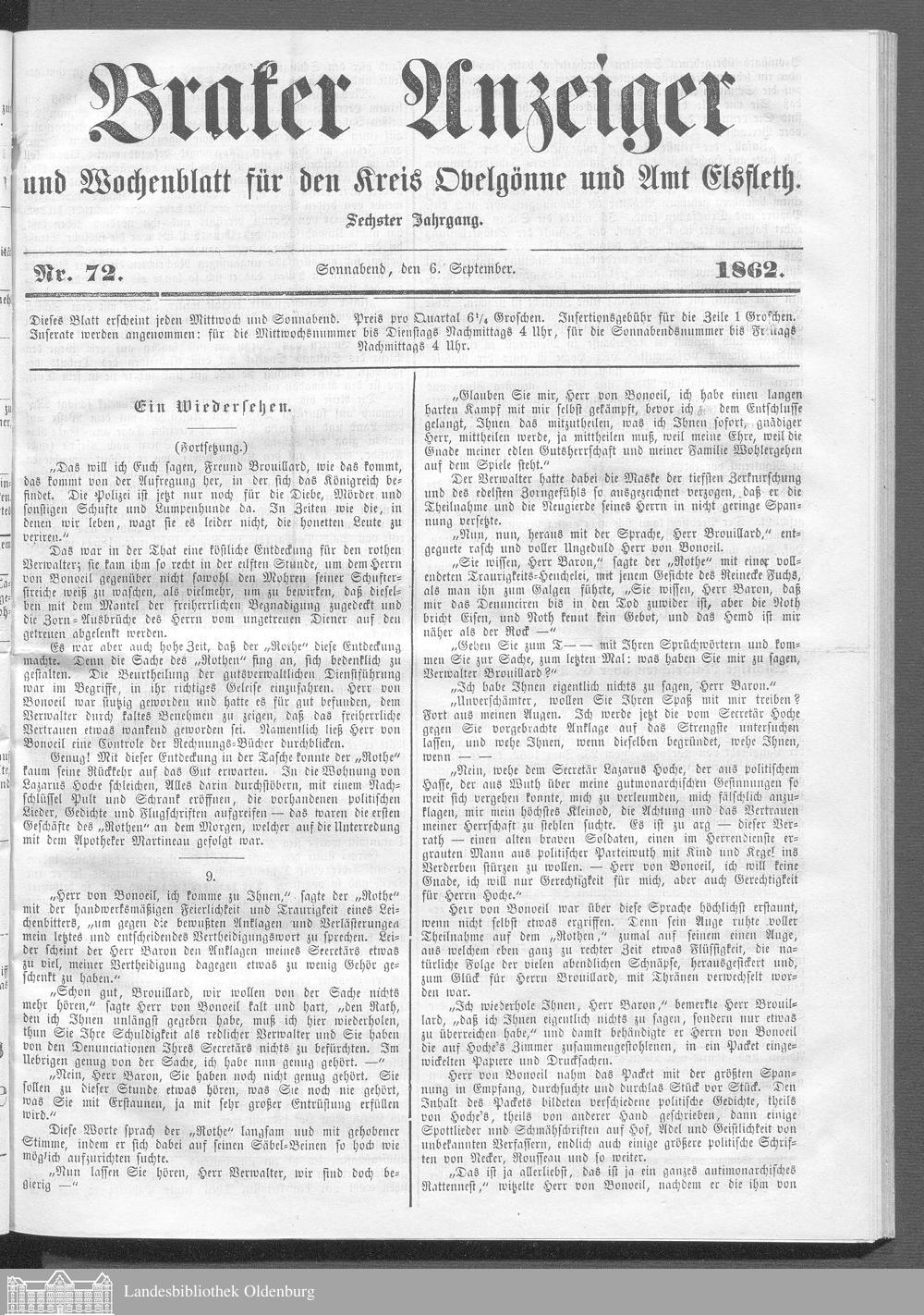 Braker Anzeiger und Wochenblatt für den Kreis Ovelgönne und Amt Elsfleth. 1858-1...