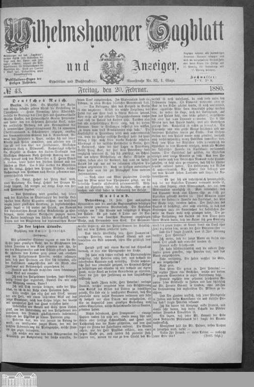 Wilhelmshavener Tageblatt und Anzeiger. 1876-1880