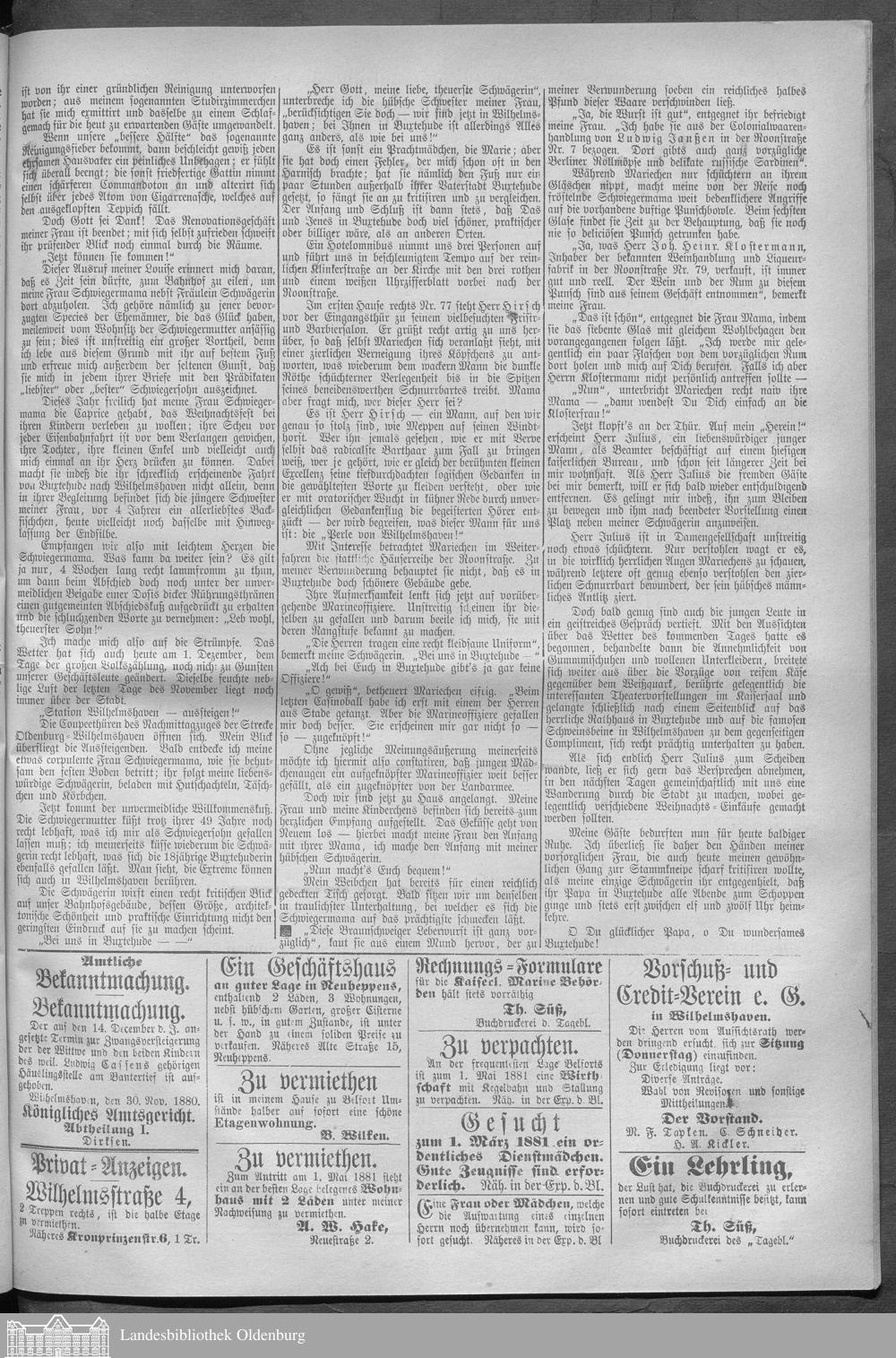 Wilhelmshavener Tageblatt und Anzeiger. 1876-1880