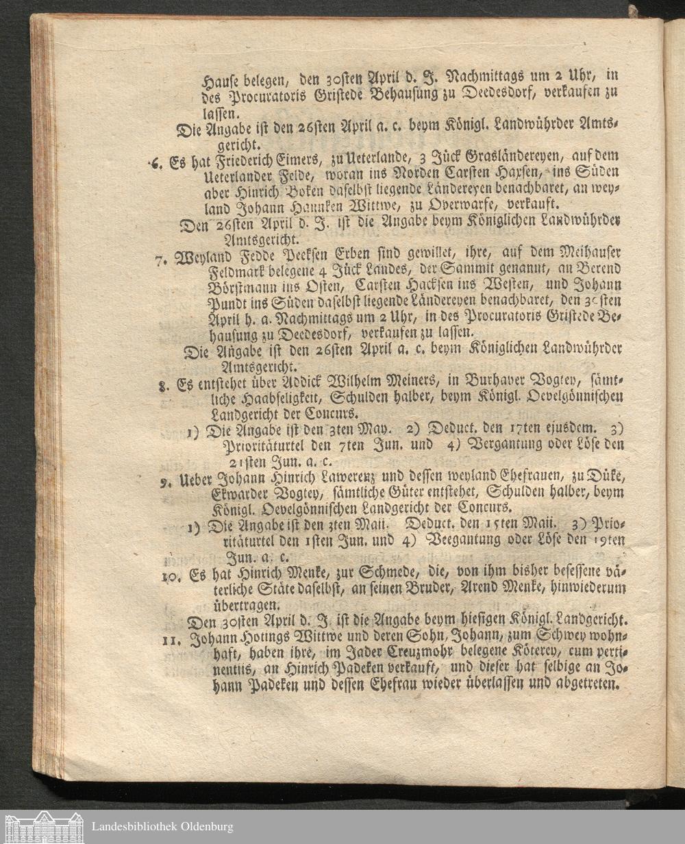 Oldenburgische wöchentliche Anzeigen. 1749-1826