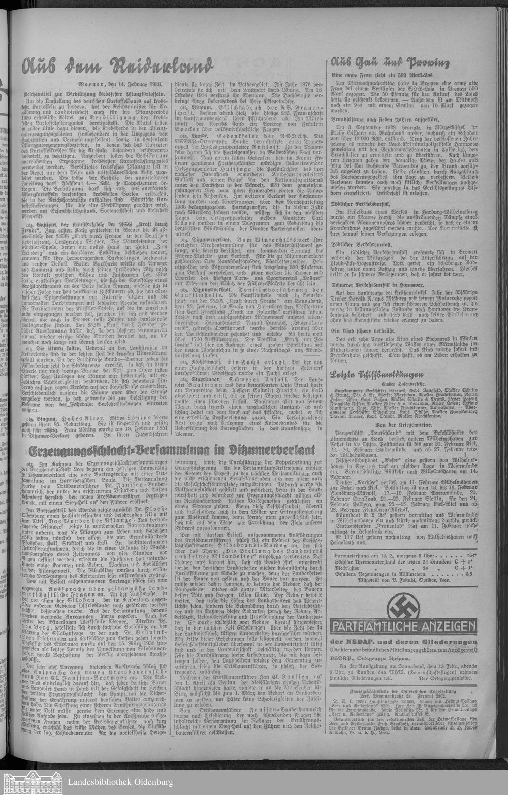 Ostfriesische Tageszeitung. 1936-1938
