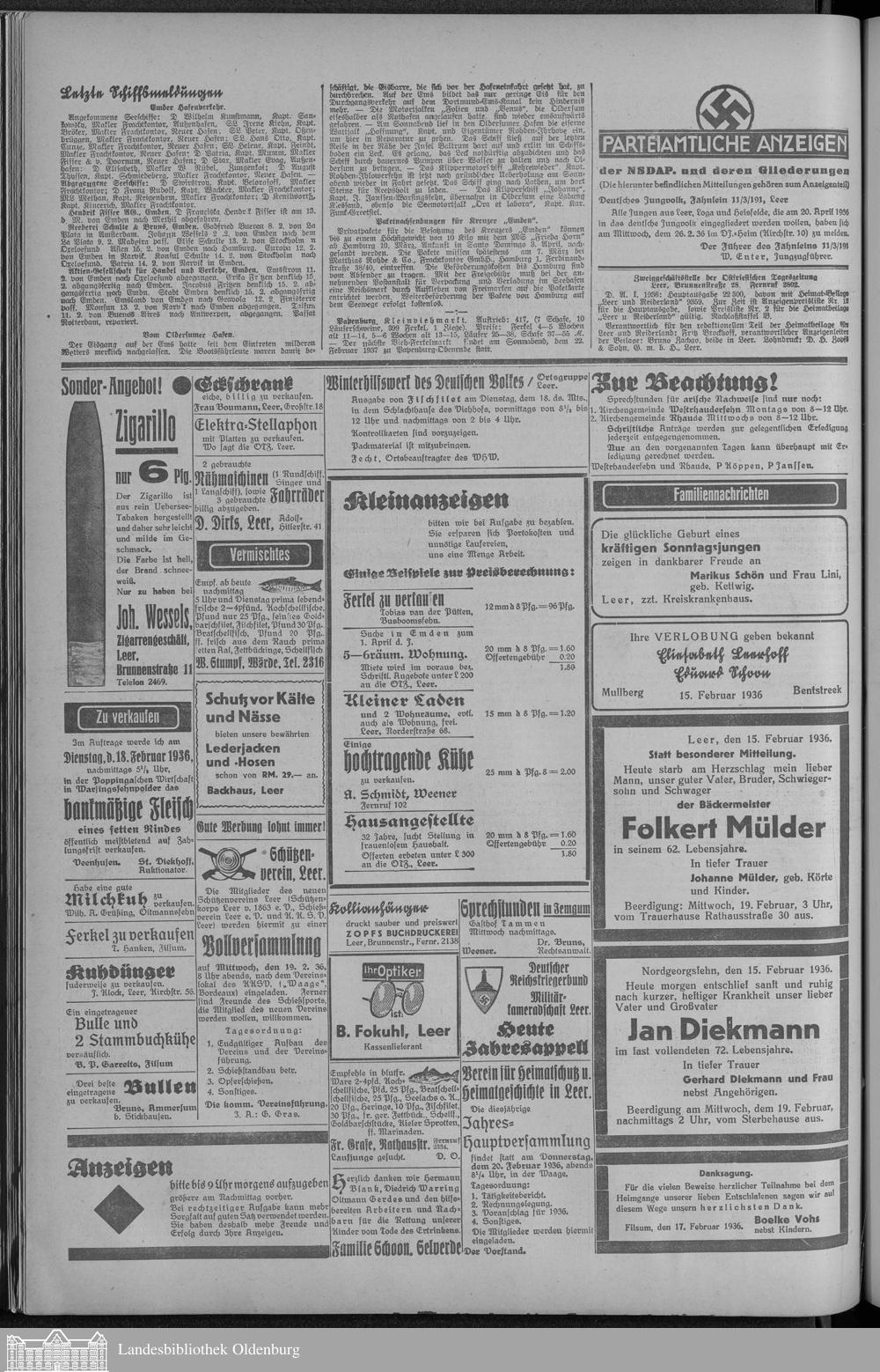 Ostfriesische Tageszeitung. 1936-1938