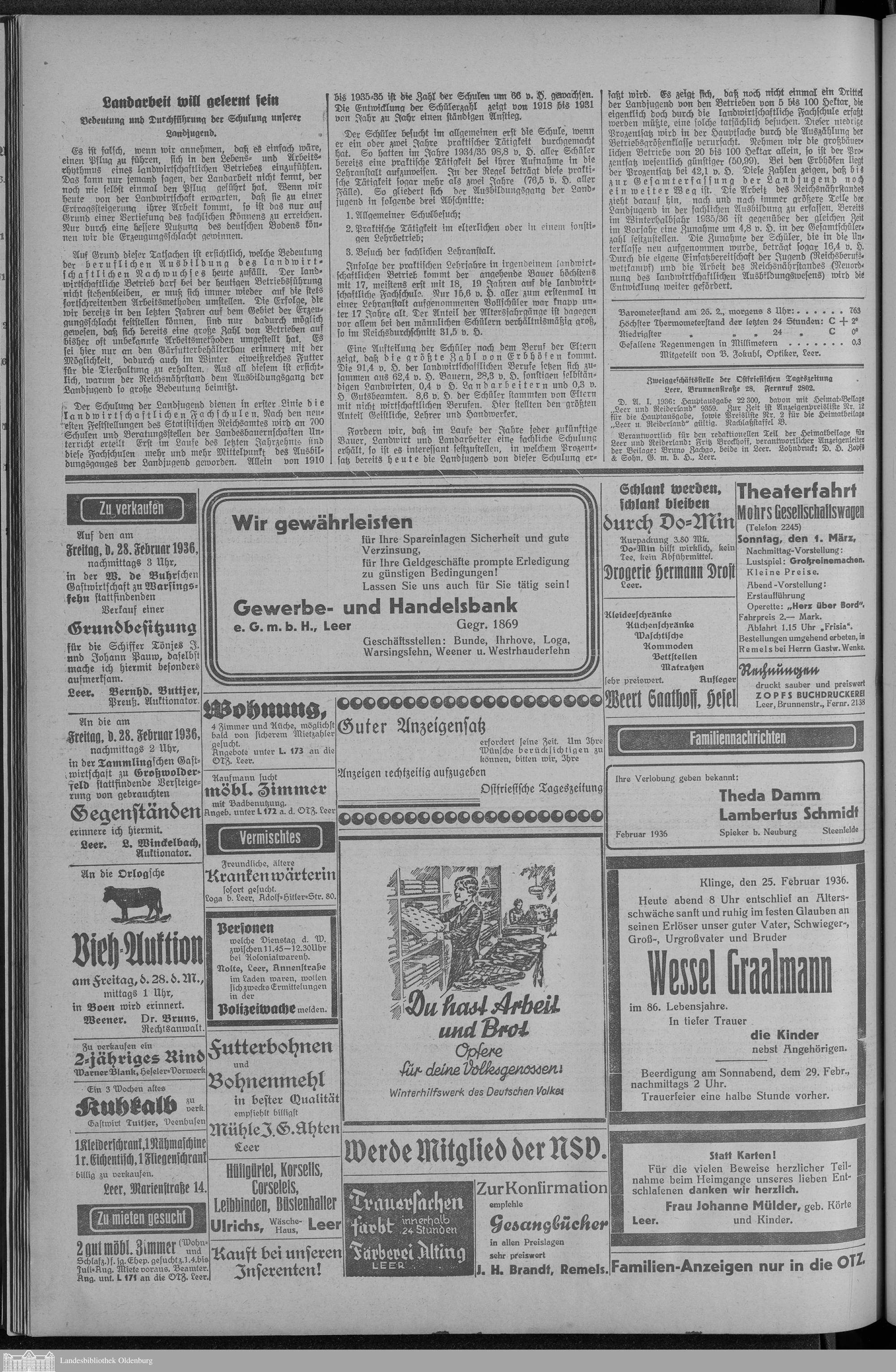 Ostfriesische Tageszeitung. 1936-1938