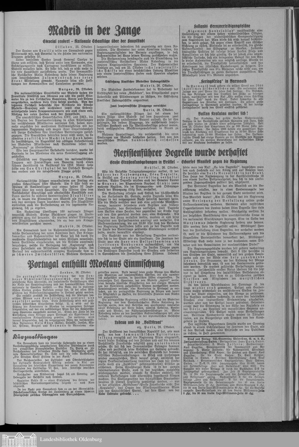 Ostfriesische Tageszeitung. 1936-1938