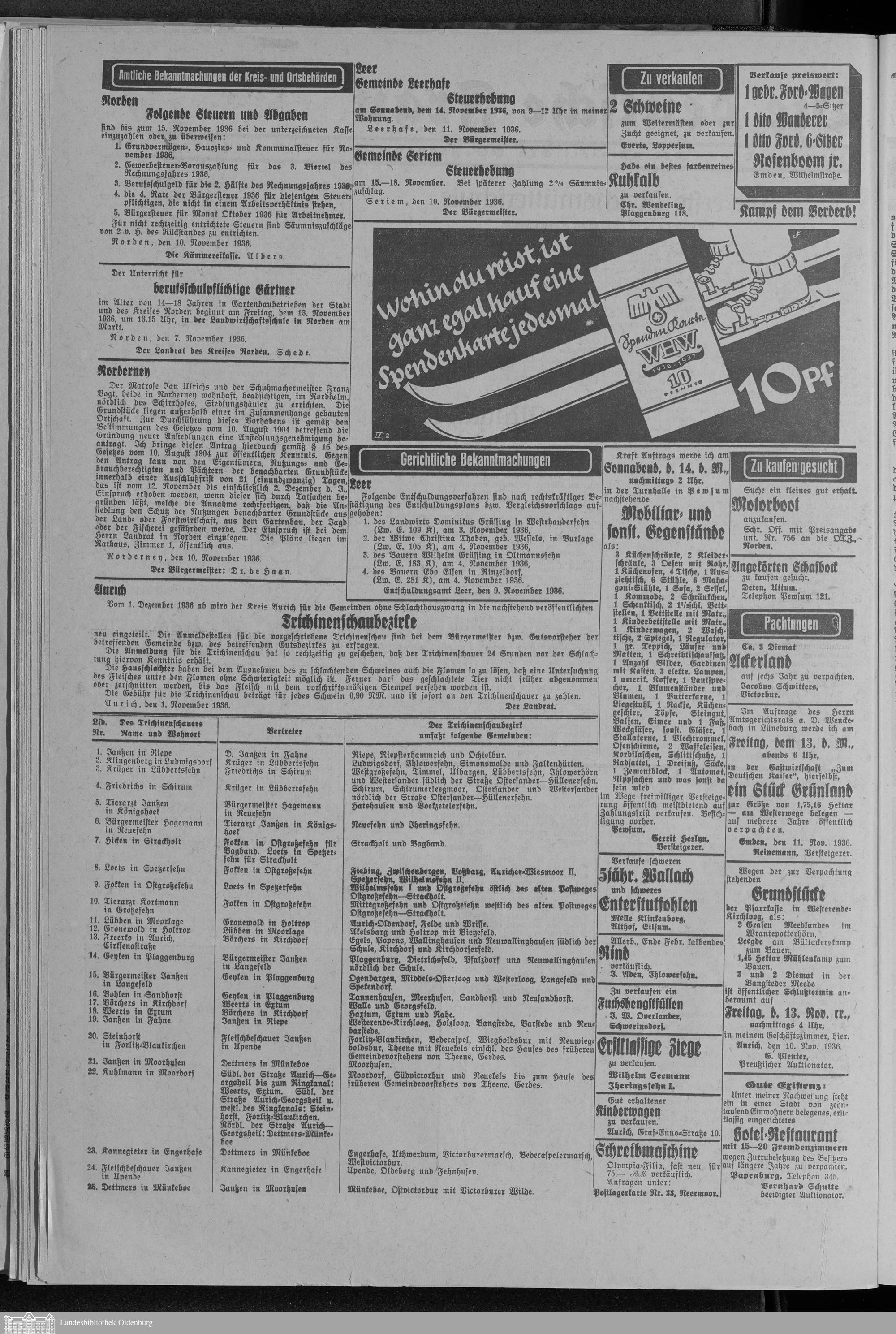 Ostfriesische Tageszeitung. 1936-1938