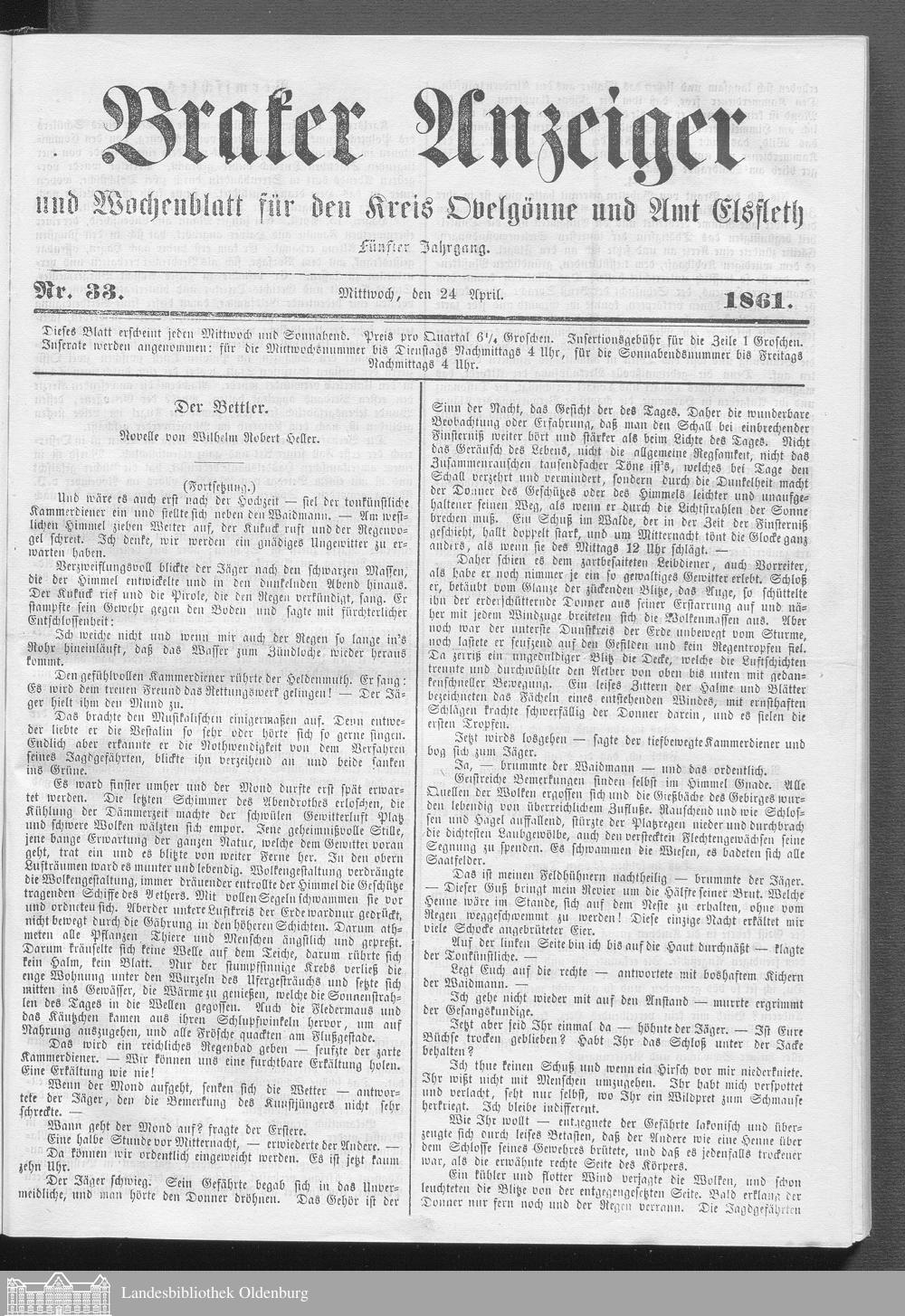 Braker Anzeiger und Wochenblatt für den Kreis Ovelgönne und Amt Elsfleth. 1858-1...