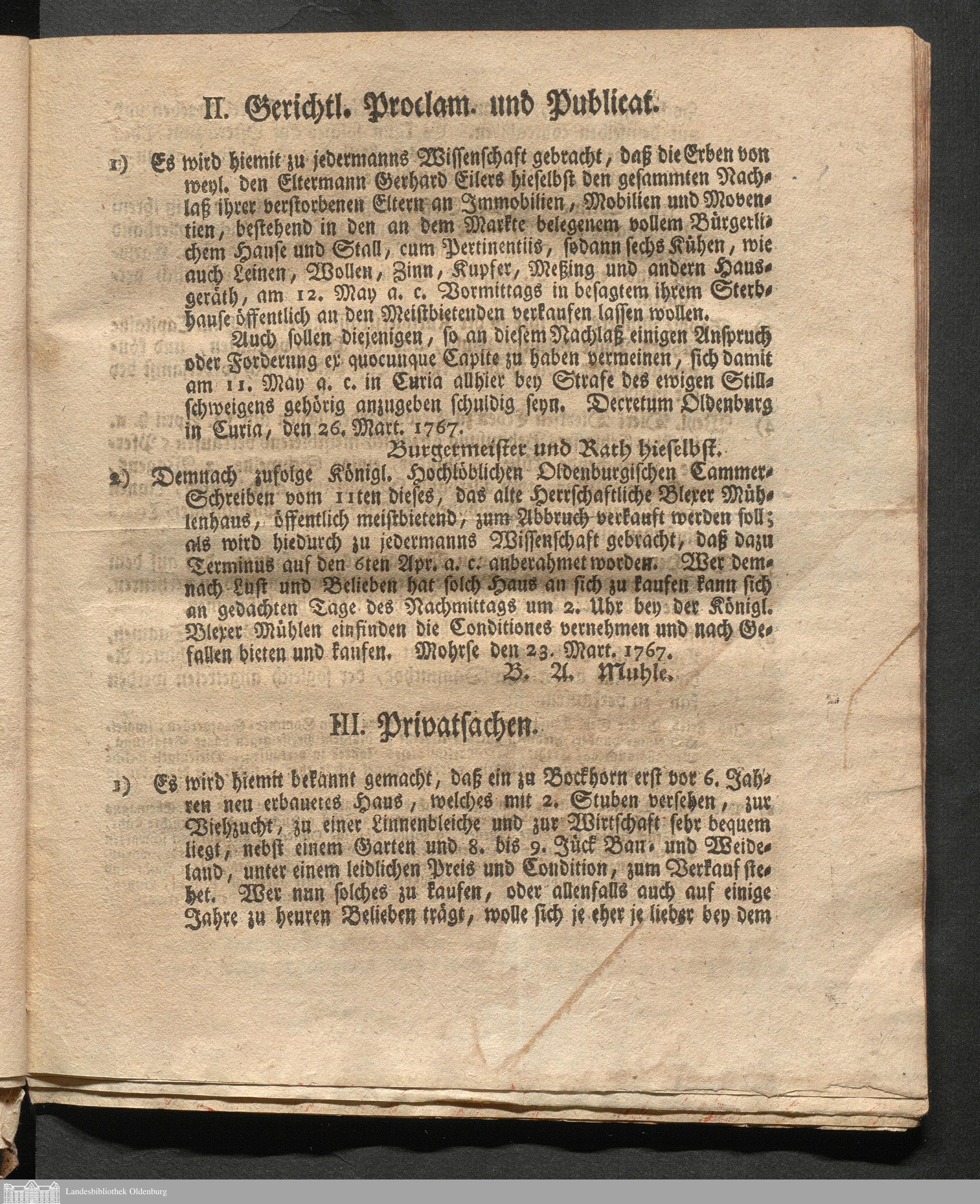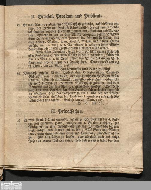 Oldenburgische wöchentliche Anzeigen. 1749-1826