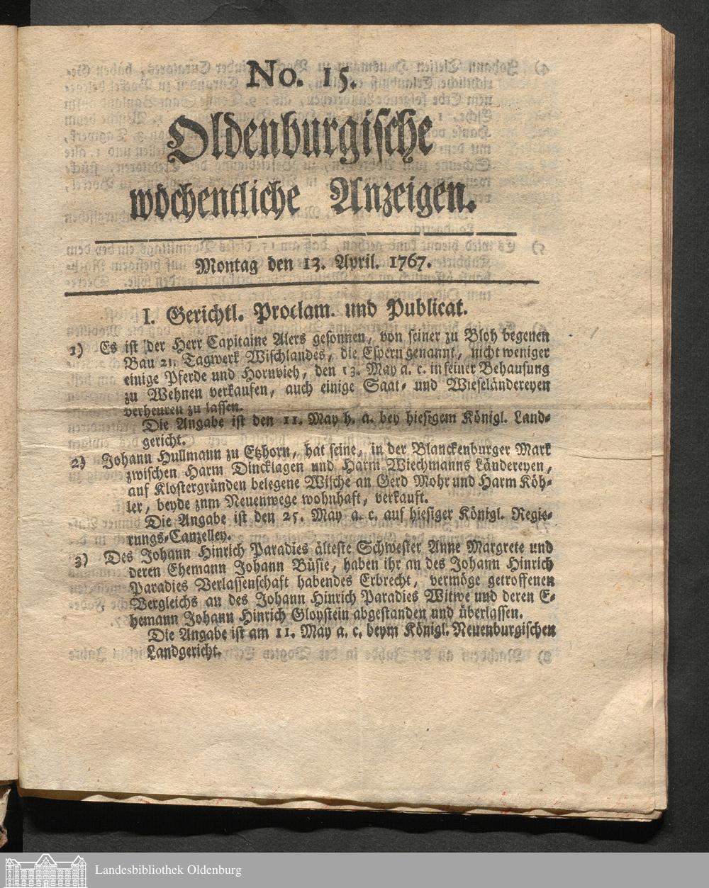 Oldenburgische wöchentliche Anzeigen. 17...