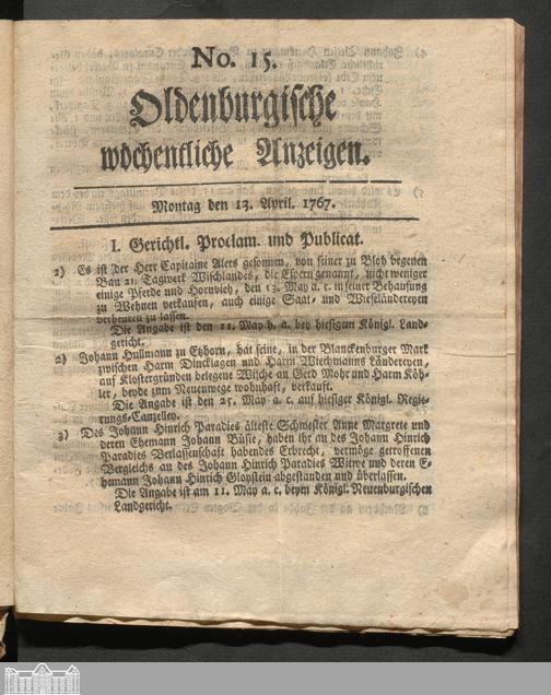 Oldenburgische wöchentliche Anzeigen. 1749-1826