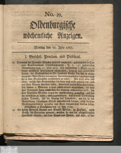 Oldenburgische wöchentliche Anzeigen. 1749-1826