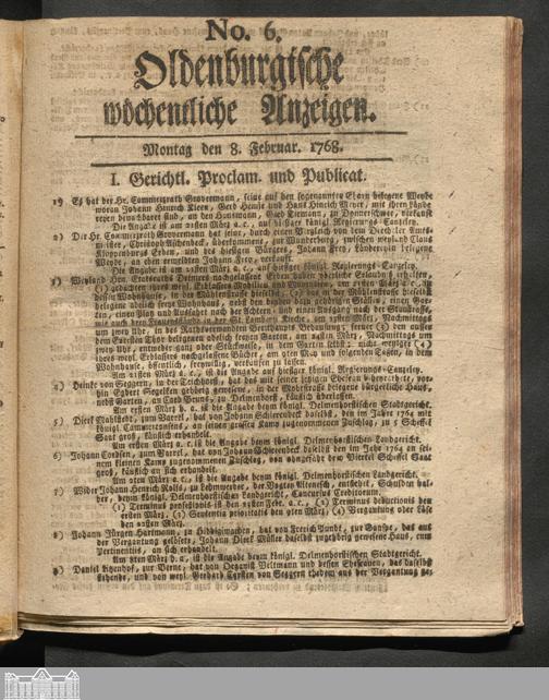 Oldenburgische wöchentliche Anzeigen. 1749-1826