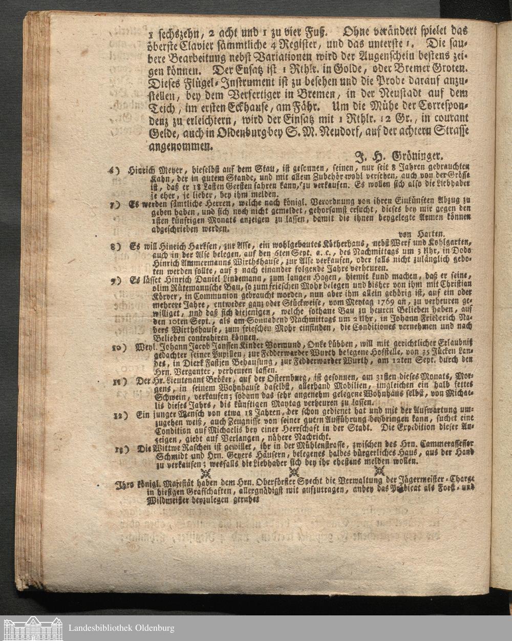 Oldenburgische wöchentliche Anzeigen. 1749-1826