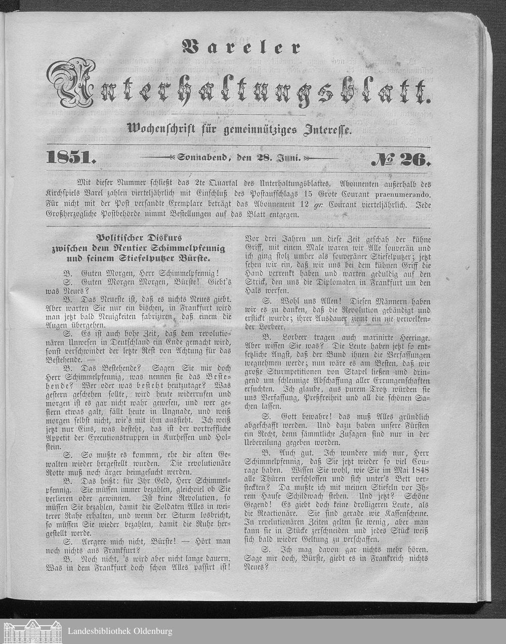 Vareler Unterhaltungsblatt. 1850-1859