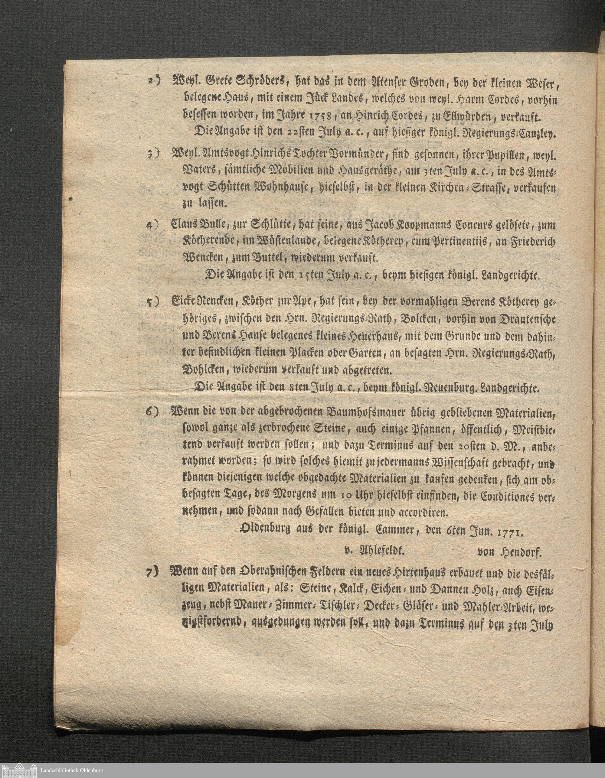 Oldenburgische wöchentliche Anzeigen. 1749-1826
