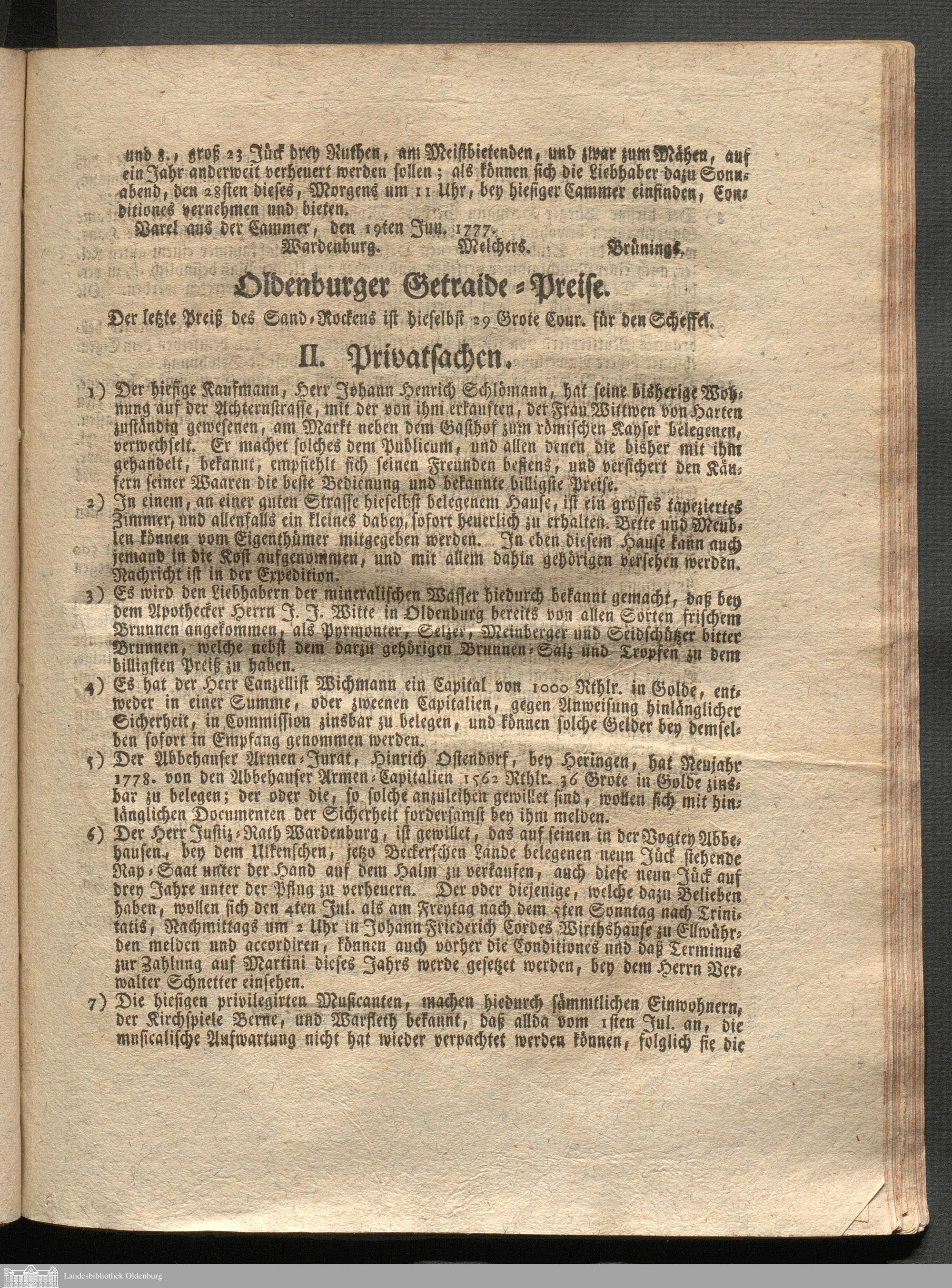 Oldenburgische wöchentliche Anzeigen. 1749-1826