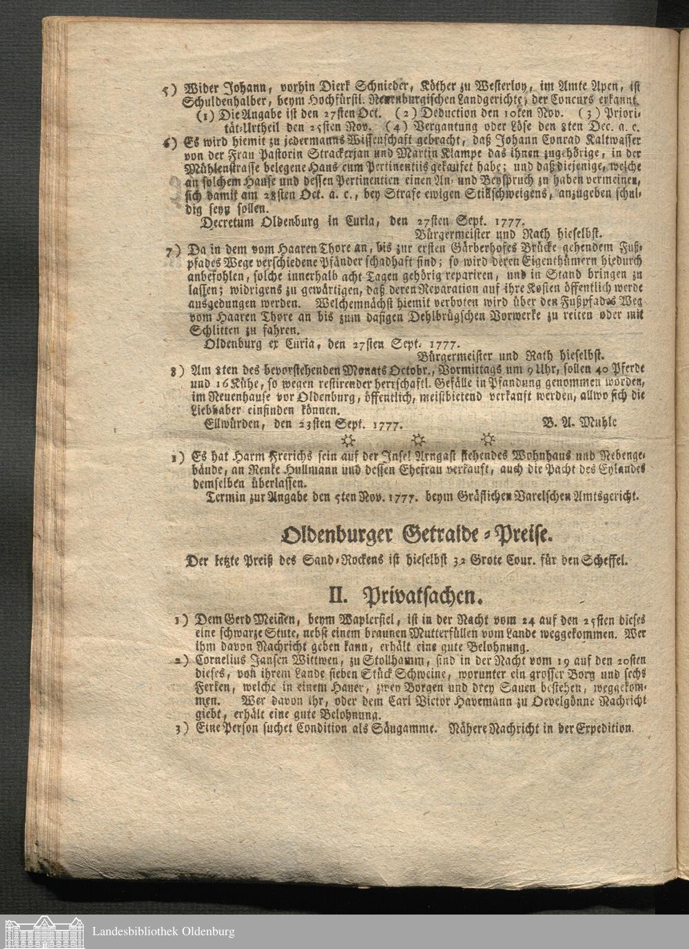 Oldenburgische wöchentliche Anzeigen. 1749-1826