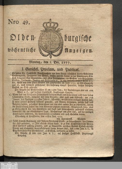 Oldenburgische wöchentliche Anzeigen. 1749-1826