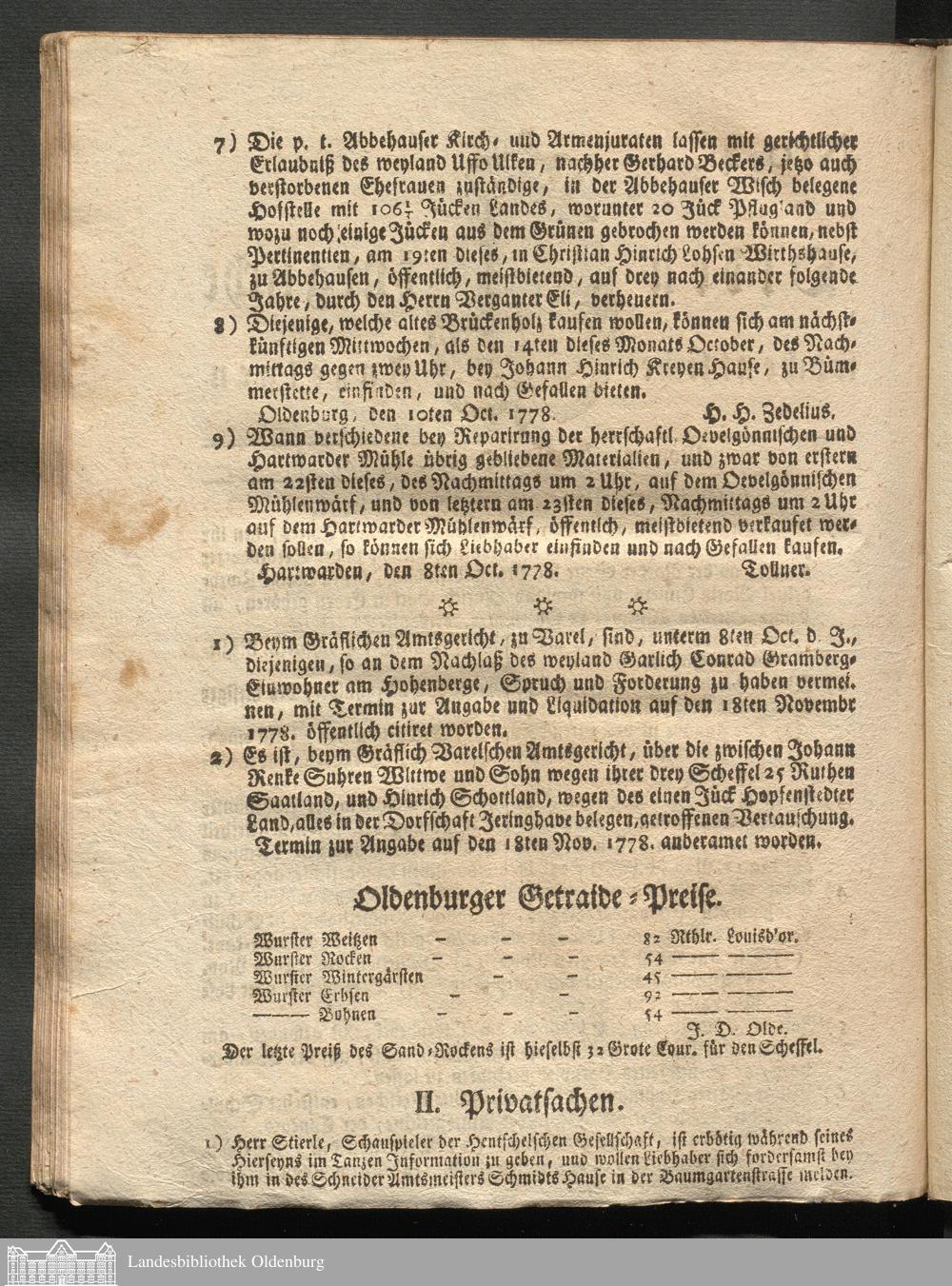 Oldenburgische wöchentliche Anzeigen. 1749-1826