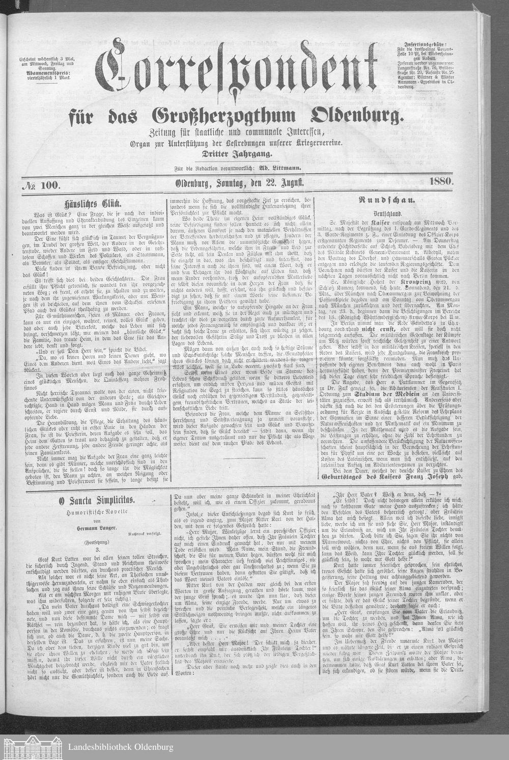 Correspondent für das Großherzogthum Oldenburg....
