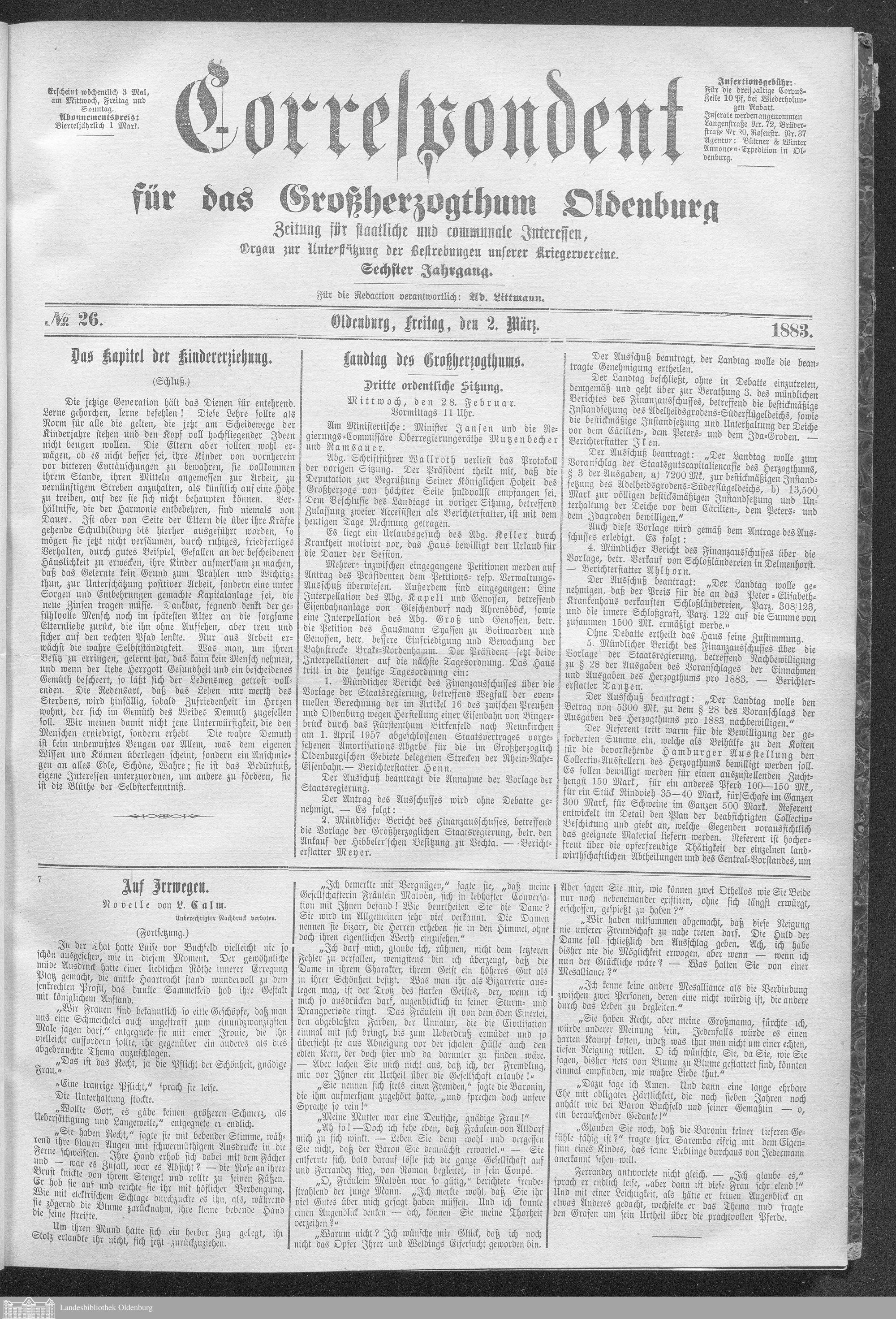 Correspondent für das Großherzogthum Oldenburg. 1878-1890