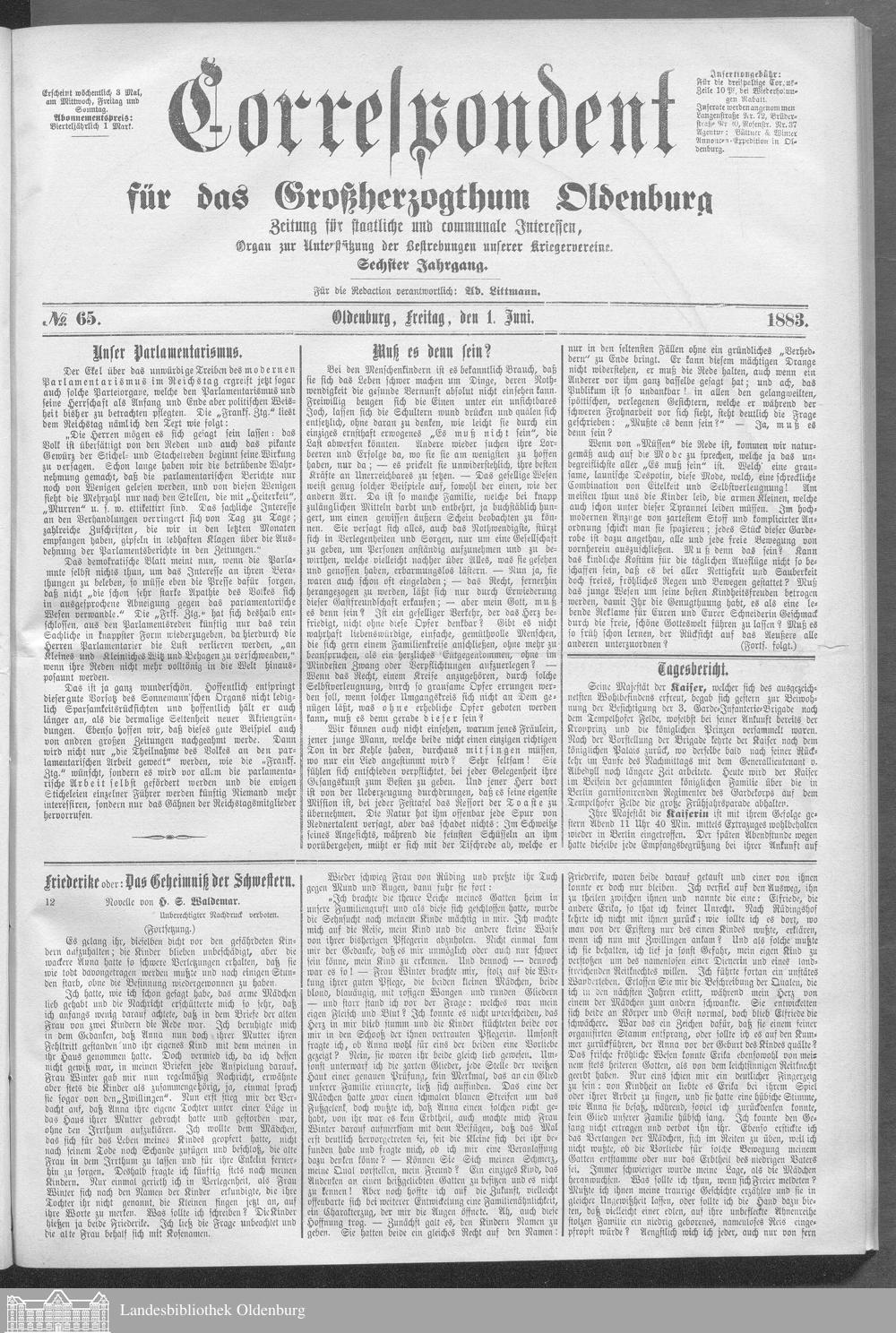 Correspondent für das Großherzogthum Oldenburg. 1878-1890