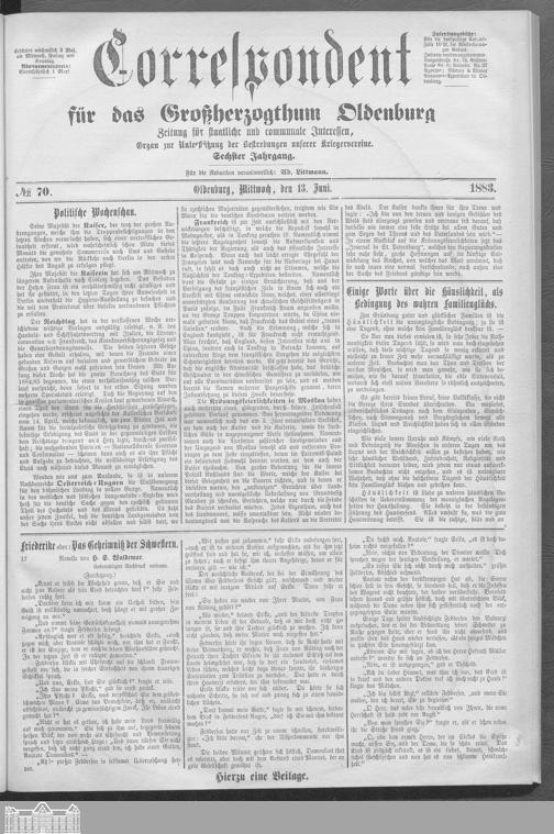 Correspondent für das Großherzogthum Oldenburg. 1878-1890