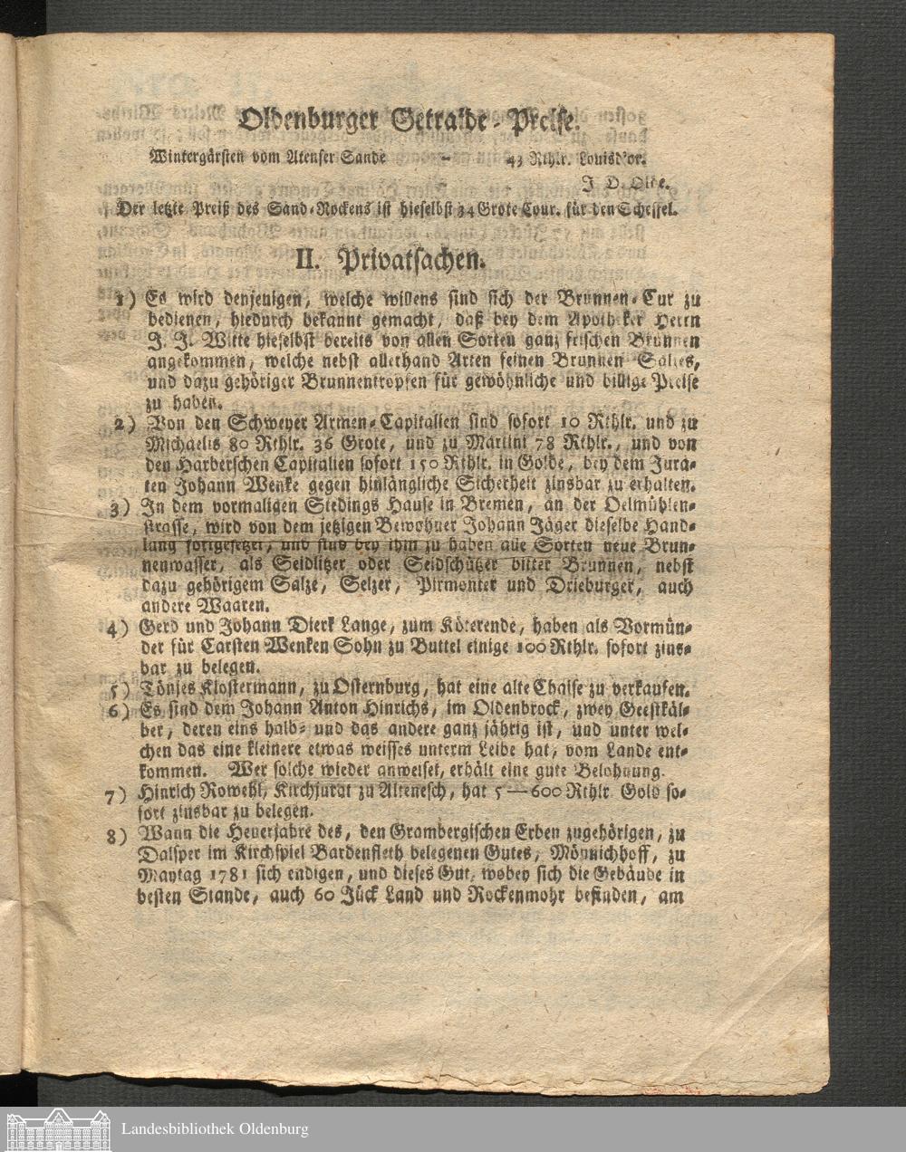 Oldenburgische wöchentliche Anzeigen. 1749-1826