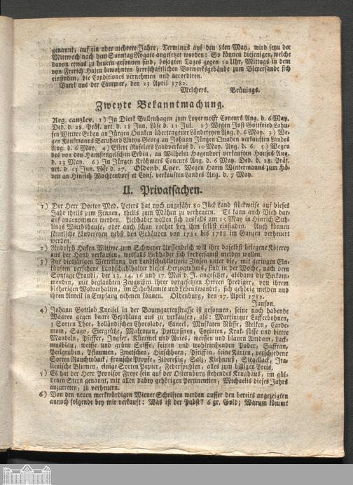 Oldenburgische wöchentliche Anzeigen. 1749-1826