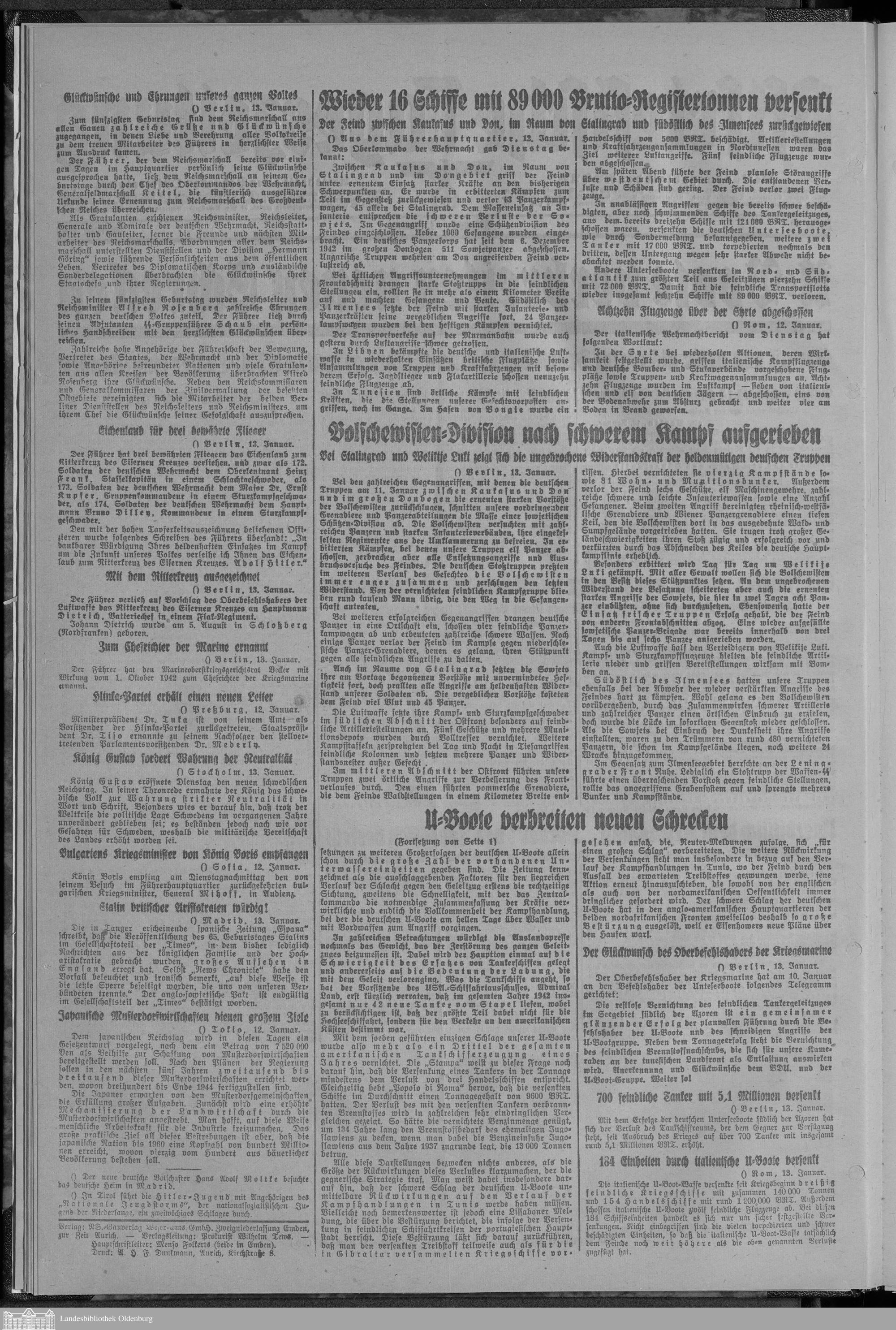 Ostfriesische Tageszeitung. 1942-1943