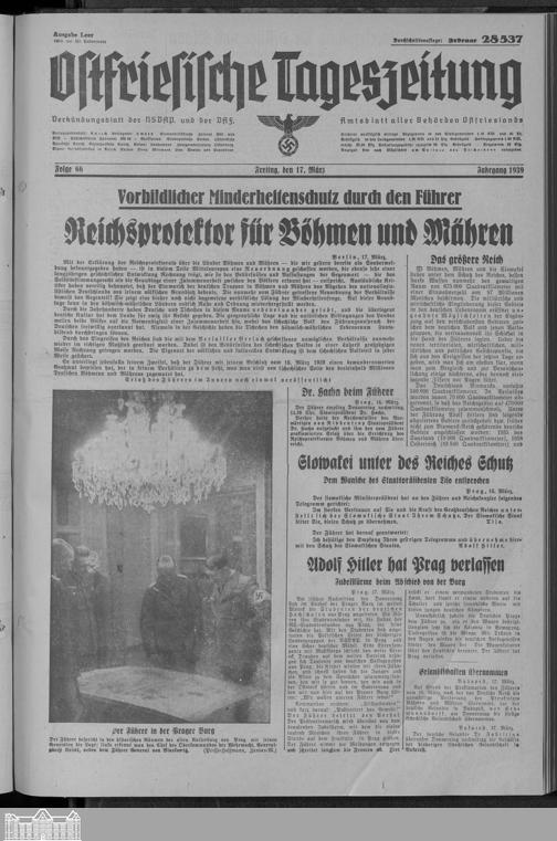 Ostfriesische Tageszeitung. Ausgabe Leer. 1938-1942